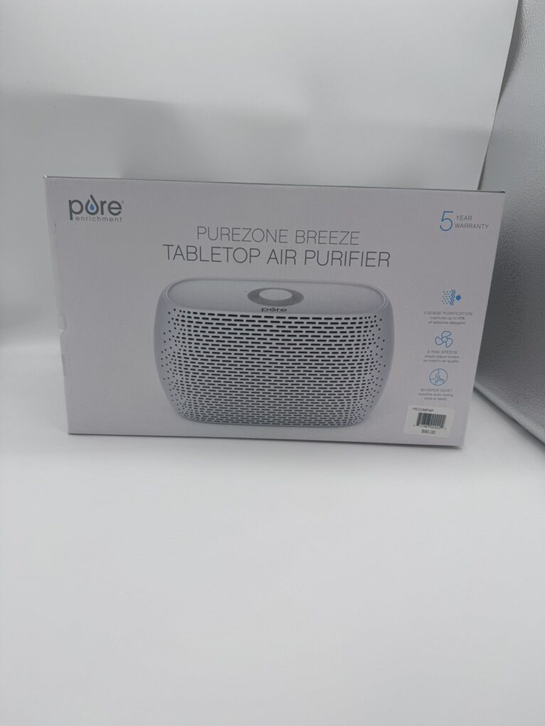VenmoNew in box PureZone Breeze Tabletop Air Purifier. Make way for a fresh breeze of clean air in every room with the PureZone™ Breeze Tabletop Air Purifier from Pure Enrichment. Enjoy improved air quality as the premium 2-stage filter safely cleans the air in bedrooms, offices, and nurseries. This modern tabletop air purifier fits perfectly on any desk, nightstand, or end table while its True HEPA filter removes 99.97% of particles as small as 0.3 microns. Simply plug it in and adjust the control knob to your choice of low, medium, or high speeds to start enjoying fresher air at home. • 2 Stage Filtration: Filter 99.97% of particles as small as 0.3 microns with the carbon activated pre-filter and True HEPA filter. • 3 Fan Speeds: Turn the control knob to find your optimal fan settings with low, medium, and high options. • Ideal for Your Space: Fits perfectly on any nightstand, desk or end table while blending in seamlessly with your decor. • Sinus and Cold Relief: Help reduce harmful airborne germs and other irritants that cause swelling and affect oreathing.