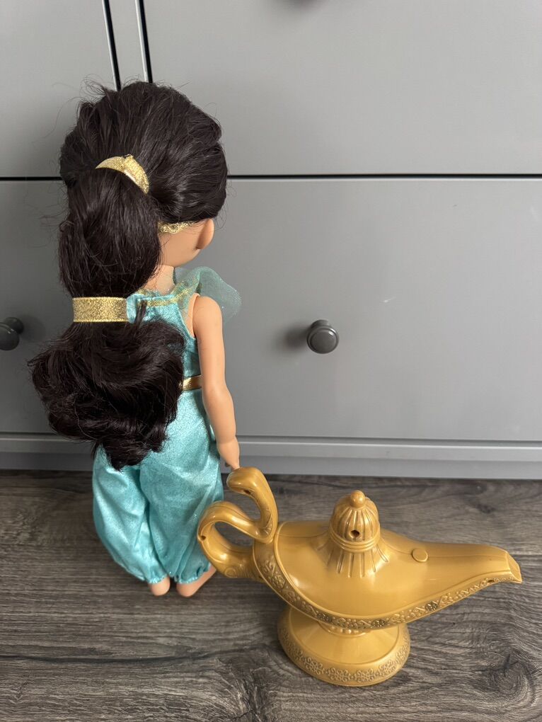 PayPalExcellent condition Princess Jasmine doll, 15”. She’s missing shoes but otherwise excellent condition. Comes with a magic lamp that lights up and makes sounds. Smoke free home