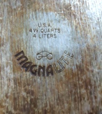 VenmoVintage GHC Magnalite, Made in USA, 4.2 Quarts (4 Liters) Saucepan (stew) with Lid, Double Spout. All original, super quality and sturdy. Lasts forever. This cooking pot is in very nice condition. Sits flat, lid fits as it should. The interior is in really nice condition with cooking surface very smooth, and comes with its original strainer rack (trivet). Cleaned, polished and ready to use.