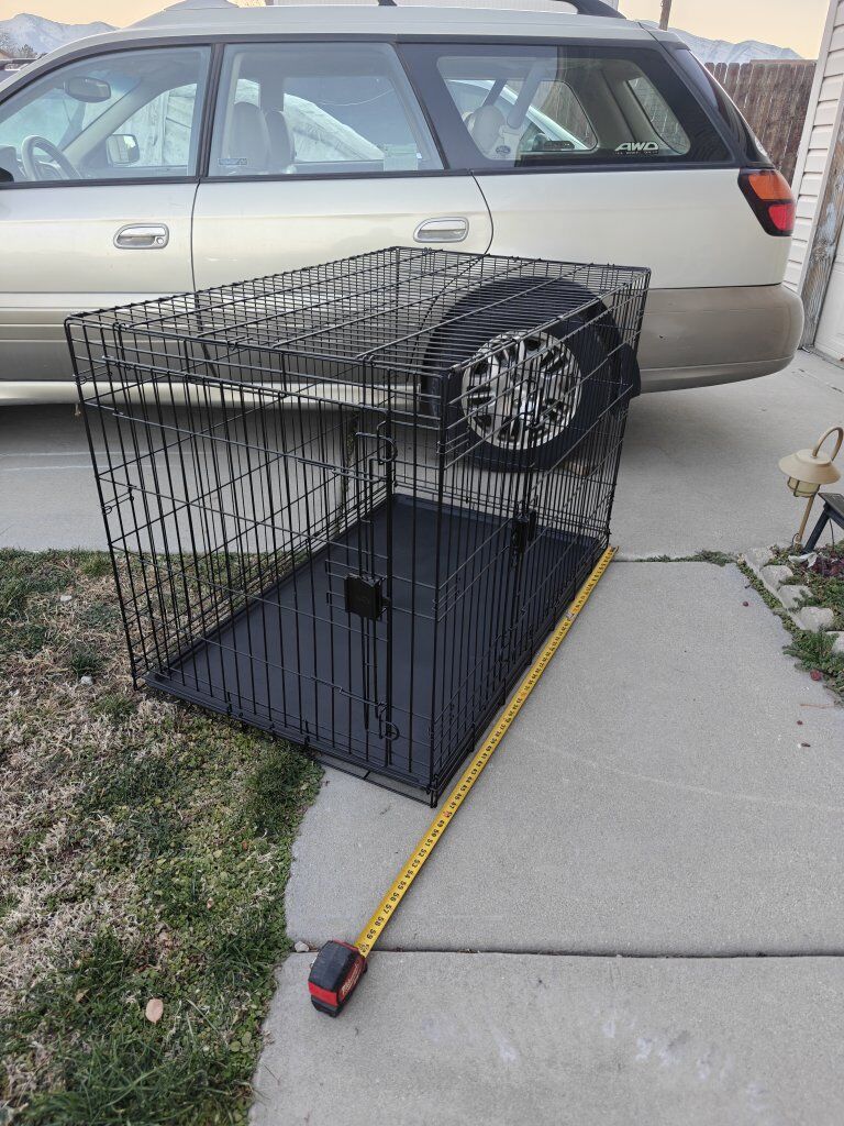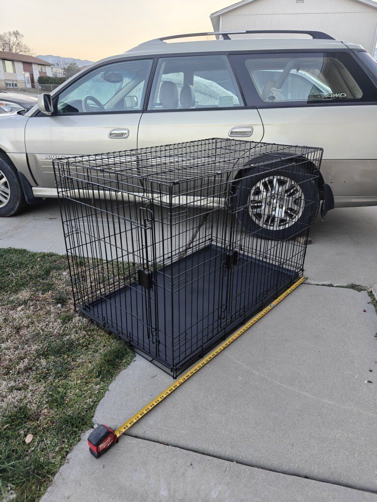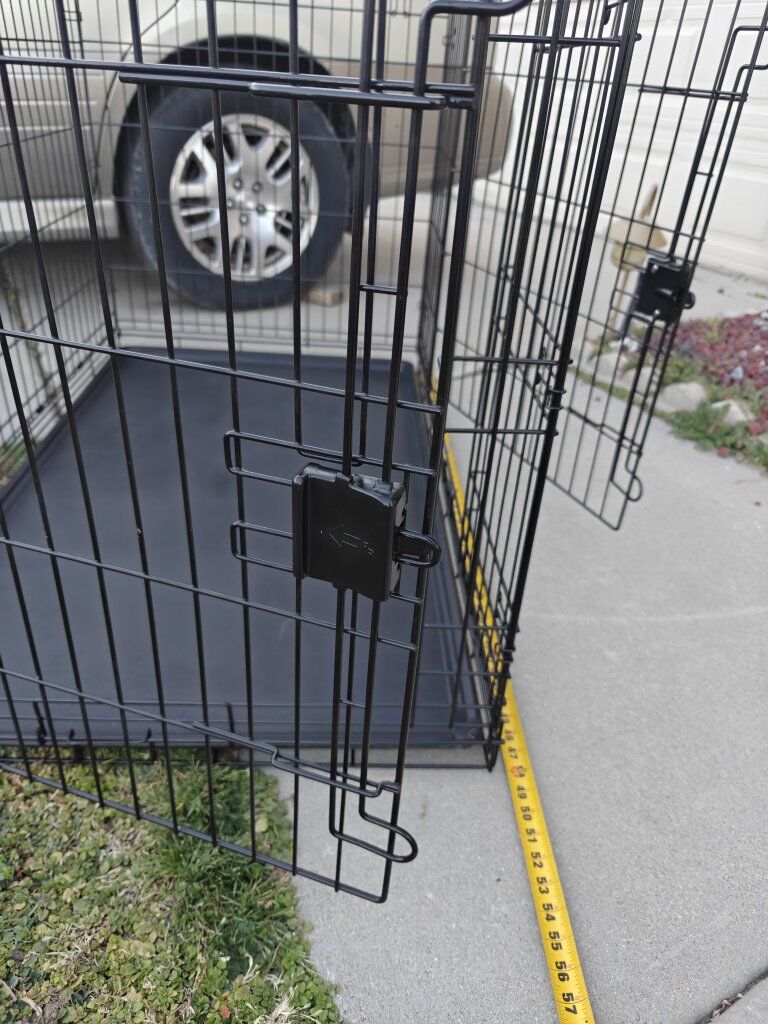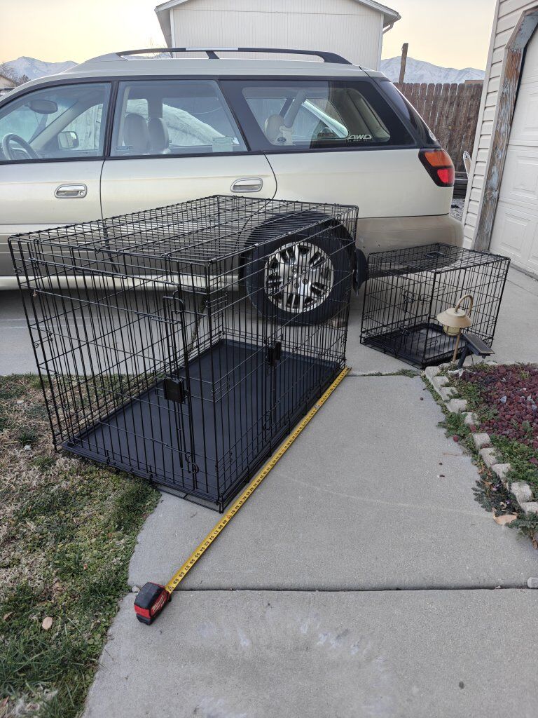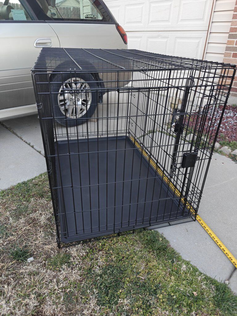 Huge Dog Training Kennel Crate. XXL. Dimensions: 48" Long, 30"Wide and 33".5' Tall. Comes with two Gates, Spring Security System Latches. Removable Plastic Tray. collapsible for Easy Transportation or store. Well Made with Quality and strong Wire. Nice and Clean Condition.!! Only $110. Located in Magna. For more Information please call or text me at:(801)604-3240.