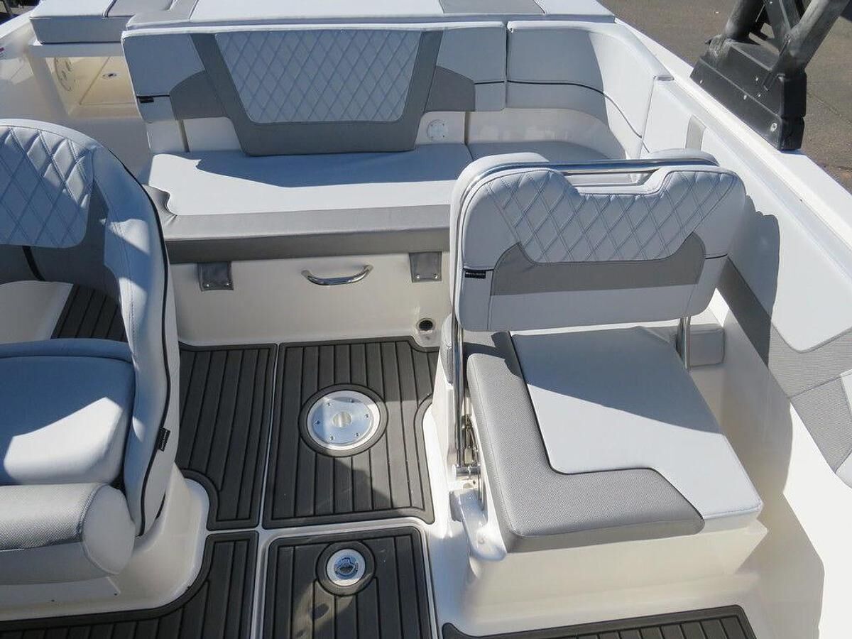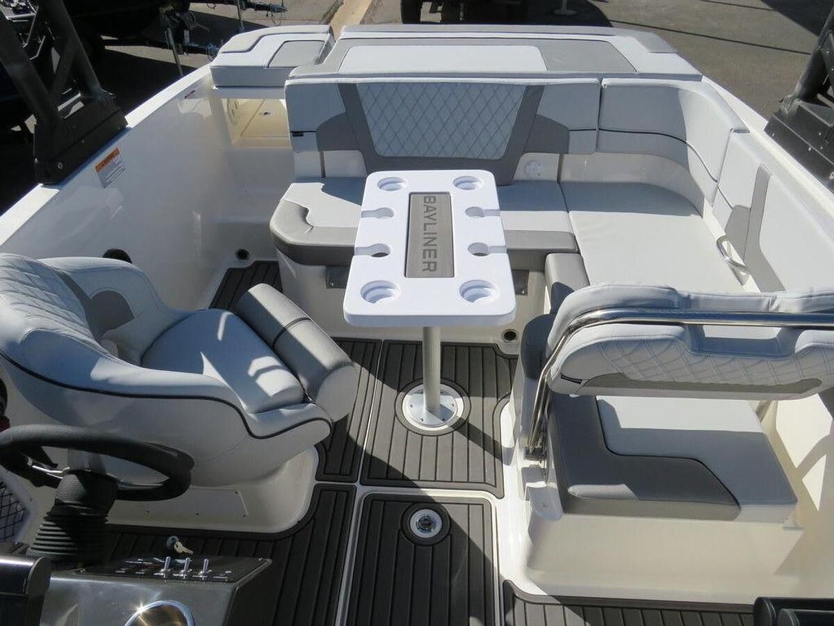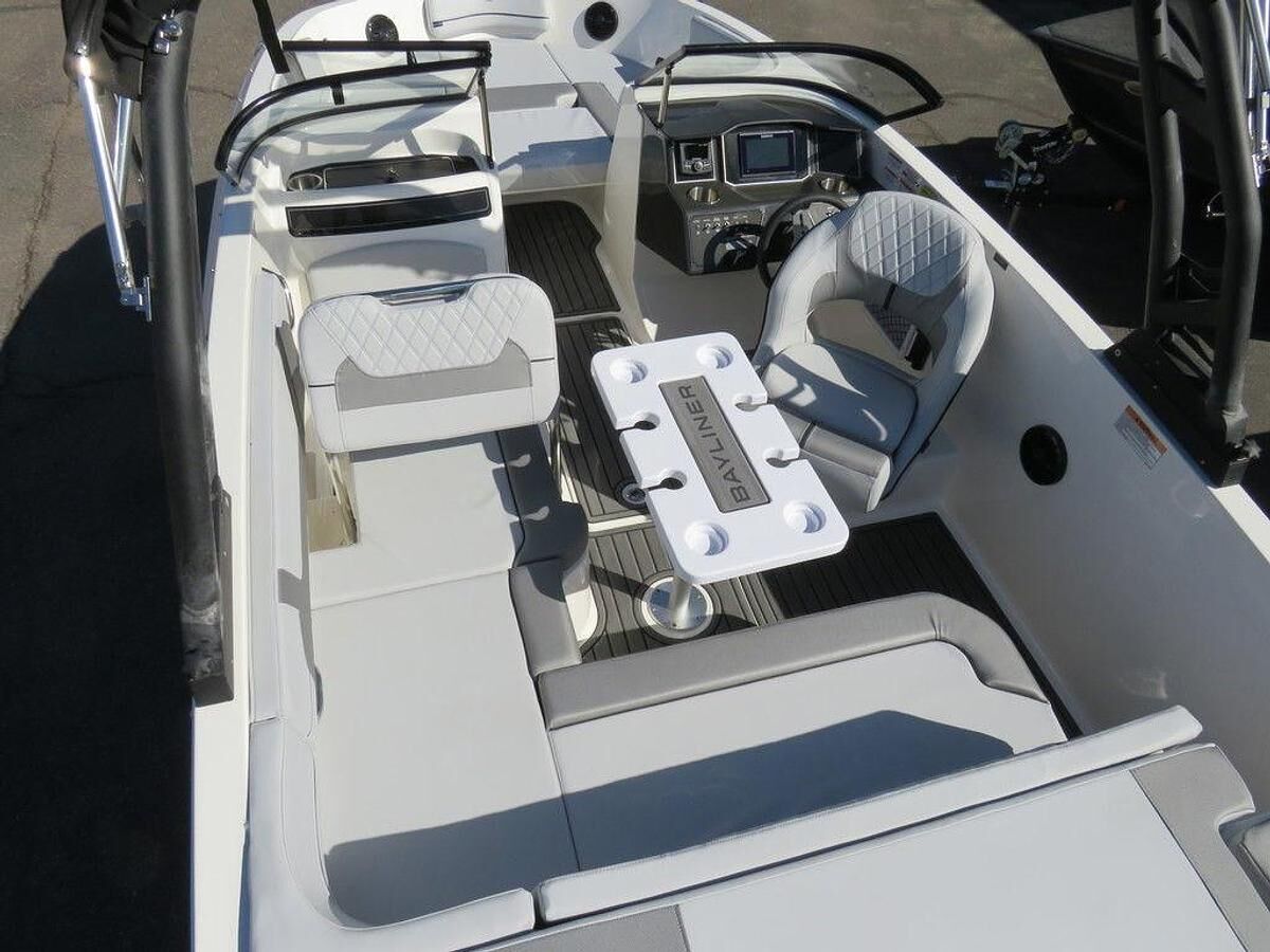 2025 Bayliner's Are Now In Stock!! Rebates Good till May 31st! 2025 Bayliner VR5 Bowrider The VR5 builds on Bayliner proven V-bottom bowrider heritage while adding form AND function. Forward the boat employs Bayliner category-leading BeamForward design which carries the full 8 feet of beam further forward in the boat than has been traditionally done. The self-bailing cockpit features Bayliner new AftAdvantage design that increases the aft seating area by extending it to the aft most point of the running surface then adding the swim platform at the end of the running surface. This keeps the platform apart from the usable interior space rather than encroaching on it regardless of whether you choose outboard or sterndrive power. The result is a boat that maximizes space and value like never before. Options Include: -MerCruiser MPI 4.5L 250hp V6 -Vr Sport Package -Proarc Wakeboard Tower -Wakeboard Rack -Bow and Cockpit Snap Cover -Gatorstep Cockpit Flooring -Bow Filler Cushion -Cockpit Table -Gatorstep Mat On Swim Platform -7" Simrad Digital Dash w/ Mercury Vessel View Link -Rockford Fosgate Stereo and Speaker Upgrade -High Altitude Gear Ratio Outdrive -High Altitude Prop -Dual Battery Upgrade w/ Switch -Wireless Phone Charger -Tandem Axle Bunk Trailer