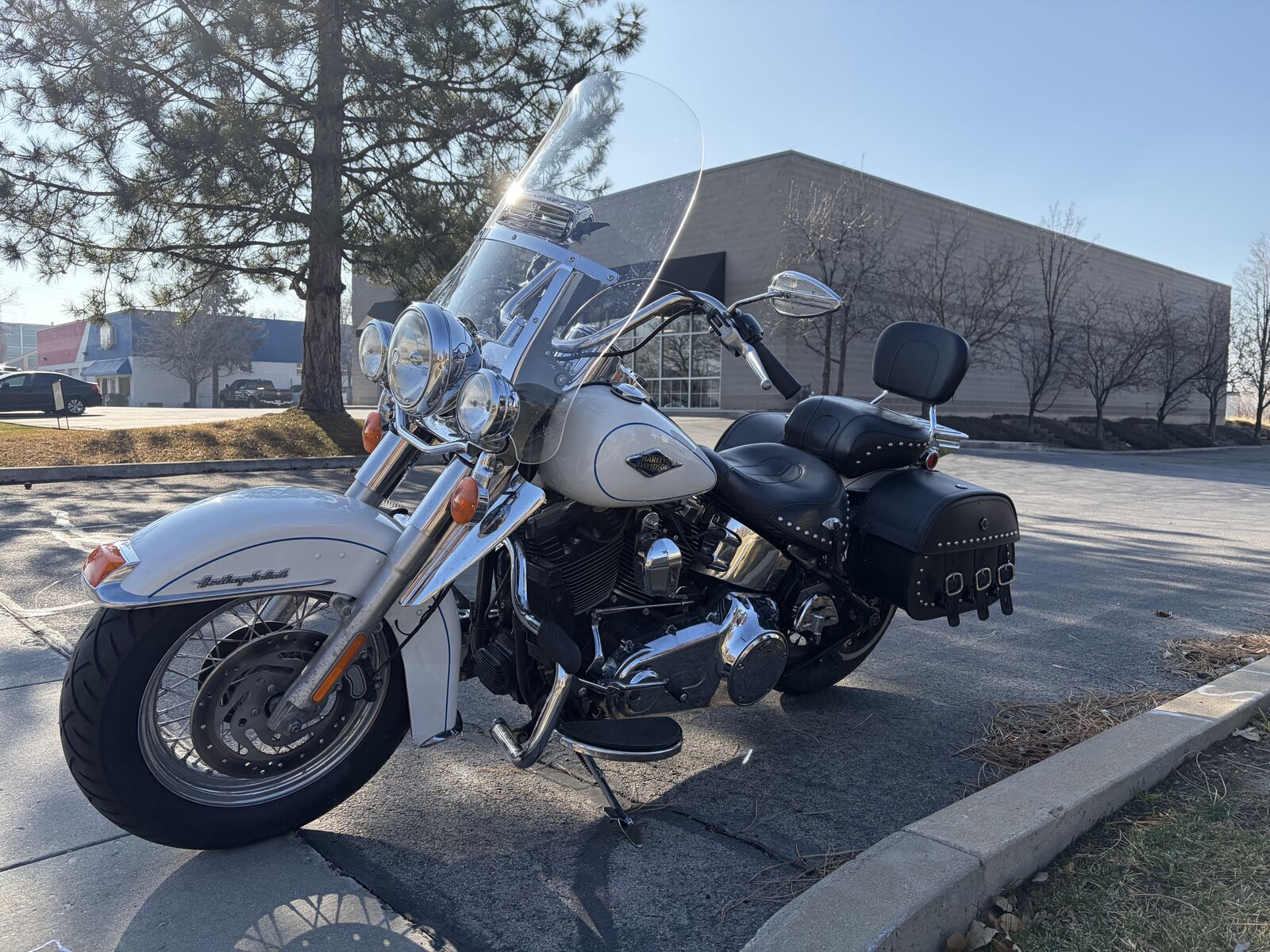 Heritage Softail Classic Blazing from the past with original dresser spirit and modern touring capabilities. The 2013 Harley-Davidson Heritage Softail Classic motorcycle FLSTC is fully equipped with modern touring capabilities and even has a removable motorcycle windshield. For 2013, the FLSTC Heritage Softail Classic comes in a limited, serialized 110th Anniversary Special Edition, featuring exclusive commemorative anniversary styling elements and premium features that make it a top-of-the-line model and a true work of living art, with finely forged finishes that age and transform in a manner unique to each vehicle. The Harley Heritage Softail Classic model features a powerful air-cooled Twin Cam 103 Harley engine with 6-speed Cruise Drive transmission, providing more performance power for passing, hill-climbing, and riding with passenger and luggage. Enjoy mile after mile with a large capacity 5 gal. Softail fuel tank. The H-D Softail model's tank is also dripping with authentic Harley-Davidson style. The Harley FLSTC model has full length rider footboards with rubber vibration isolation for added comfort. Another of the many great features of this classic motorcycle is the detachable motorcycle windshield. You can remove the Harley Heritage Softail windshield for a new look. Learn more about the style and functional components found on this bike. If you're looking for a pure classic cruiser motorcycle, check out the Fat Boy model. The Harley touring motorcycles are also well worth a look including the Electra Glide Ultra Limited touring bike.