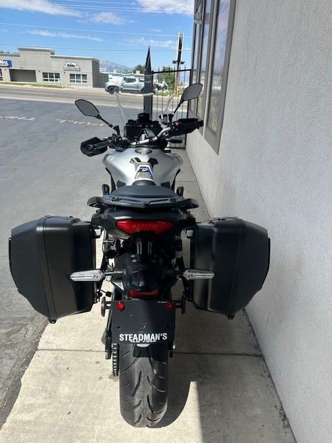 Priced for quick SALE! Engine Type: DOHC, inline 3-cylinder; 4 valves per cylinder Displacement: 890cc Bore and Stroke: 78.0mm x 62.1mm Cooling: Liquid Compression Ratio: 11.5:1 Fuel System: Fuel injection with YCC-T Ignition: TCI: Transistor Controlled Ignition Transmission: 6-speed; multiplate assist and slipper clutch Final Drive: Chain Front Suspension: KYB® 41mm inverted fork, electronically adjustable with preload adjustability; 5.1 in. travel Rear Suspension: KYB® single shock, electronically adjustable with remote preload adjustability; 5.4 in. travel Front Brakes: Dual 298mm hydraulic disc; ABS Rear Brakes: 245mm hydraulic disc; ABS Front Tire: 120/70ZR17 Rear Tire: 180/55ZR17 Wheelbase: 59.1 in. Seat Height: 31.9 in. or 32.5 in. Rake: 25.0 deg. Trail: 4.3 in. Fuel Capacity: 5.0 gal. MPG: 49 MPG Dry Weight: Curb Weight: 485 lb. Colors: Liquid Metal, Redline