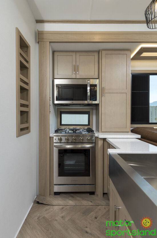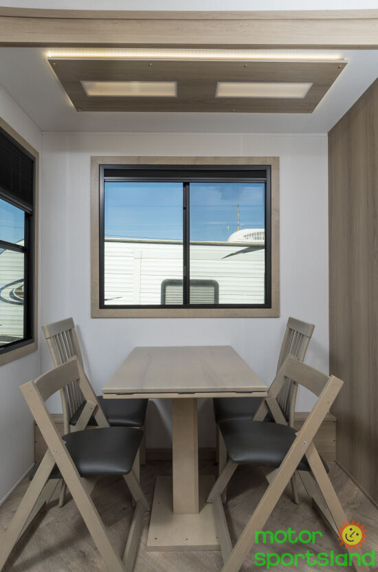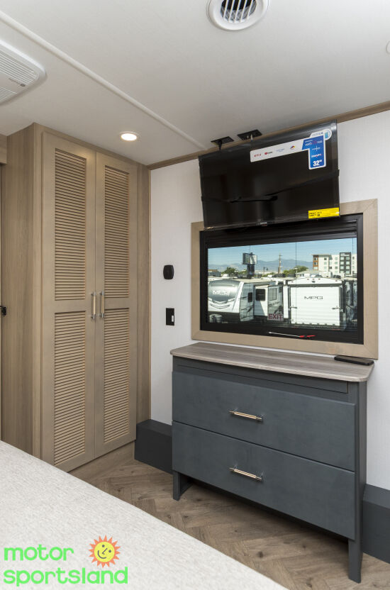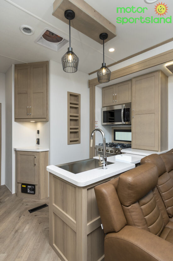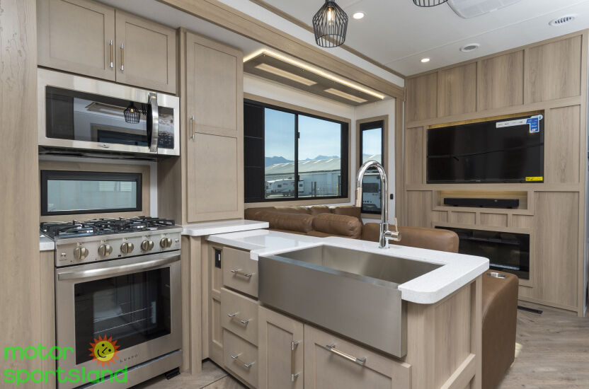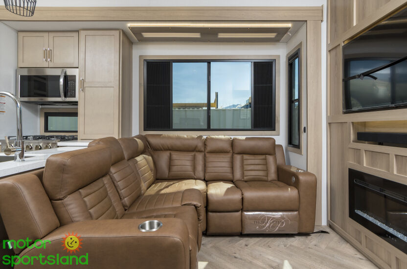 Unparalleled Comfort: Enjoy a king-sized master suite with plush bedding, ensuring restful nights no matter where you roam. Family-Friendly Design: With multiple sleeping areas, including a spacious loft, there’s room for the whole crew to relax and unwind. Luxury Living: The modern kitchen boasts high-end appliances, ample counter space, and a cozy dining area for family meals on the go. Entertainment Hub: A large LED TV, premium sound system, and abundant storage for toys and gear make every trip a blast. Durability & Style: Built with Keystone’s renowned craftsmanship, the Raptor 433 combines rugged strength with sleek, contemporary design.