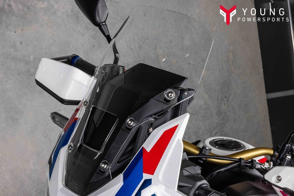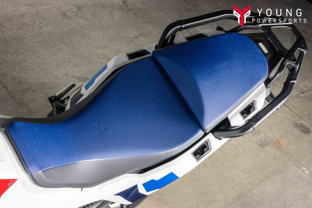 2025 Honda® Africa Twin Adventure Sports ES DCTADVenture beyond limitsAdventure calls in two options: the Africa Twin and Africa Twin Adventure Sports ES. Both pack a powerful 1083cc engine and long-distance comfort, plus optional DCT. The standard model journeys off-road with its 21-inch front tire, while the Adventure Sports ES goes the road route with electronic suspension and a 19-inch front wheel. Your journey starts here!Features may include:1083cc twin-cylinder engineA narrow 1083cc parallel-twin engine delivers torque smoothly throughout the RPM range, making them great for everything from off-road riding to highway cruising.Cruise controlAll Africa Twin models come factory-equipped with cruise control for touring, and you’ll thank us after those high-mileage rides. Low center of gravityBy placing heavy components like the battery near the bike's center of gravity and using a compact engine, we've created a platform for excellent handling.TFT touchscreen displayA 6.5-inch Thin Film Transistor (TFT) instrument touch panel features three displays and can show a multitude of information, depending on your needs.Selectable ABSThese bikes come with a three-mode Anti-Lock Braking System (ABS): On-Road, Off-Road, and a rear ABS removable mode that can be turned off for dirt riding.Riding modesBoth models offer six selectable riding modes: Tour, Urban, Gravel, Off-Road, User 1, and User 2. The last two allow you to customize them to your individual preferences.Apple CarPlay™ and Android Auto™Apple CarPlay™ and Android Auto™ are standard on all models and seamlessly integrate with your mobile device, allowing easy access to calls, texts, maps, music, and more.