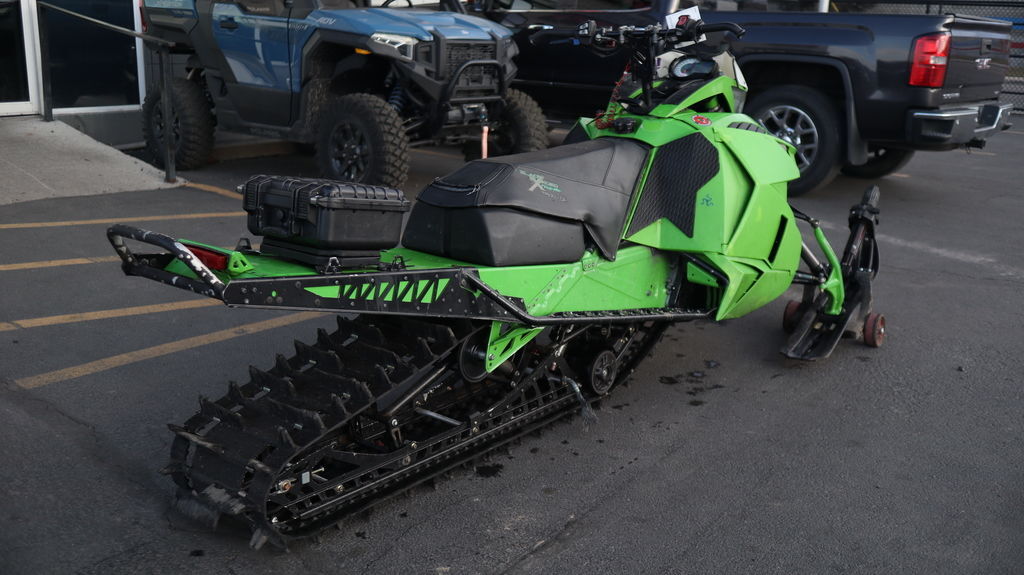 2016 Arctic Cat® M 800 Sno Pro (162) Features may include: 8000 2-STROKE ENGINE 160-class HP makes this 794cc 2-stroke the most powerful 800 engine in the industry. It features a lightweight, quick-revving crankshaft, twin spark plugs per cylinder and weight-saving engine reverse technology. The engine knock sensor provides octane recognition, giving you more fuel options. ARCTIC DRIVE SYSTEM WITH TEAM CLUTCHES New for 2016, the Arctic Drive System™ incorporates a large TEAM BOSS driven clutch and TEAM drive clutch. By eliminating belt skid, these clutches reduce temperature and transfer more power to the track. In addition to their incredible strength, these clutches are known for their easy and precise tuning. ARCTIC MOUNTAIN FRONT SUSPENSION Arctic Mountain Suspension (AMS) is all-new for 2016, from its single-post spindles set to a 27-degree caster angle for better sidehilling, to the 2.4-lb. weight savings in the A-arms and 7-in. tapered skis. All that plus a narrower 36-in. stance. FOX FLOAT® 3 shocks cushion aggressive bumps and smooth out even the harshest ruts. FLOAT-ACTION REAR SUSPENSION Unique tri-hub rear axle system is engineered to be very light and very strong. Front-arm Arctic Cat® IFP shocks provide stability, while rear springless FOX FLOAT® 3 air shocks provide a full range of pressure and tuning options while reducing snow buildup weight. NARROWER 35.5-38.5 ADJUSTABLE SKI STANCE The narrower ski stance (adjustable: 35.5-in.–38.5-in.) makes it easier to pick your line and own it. It’s easier to carve, easier to initiate a sidehill, easier to navigate through the trees. And it’s never been easier to handle.