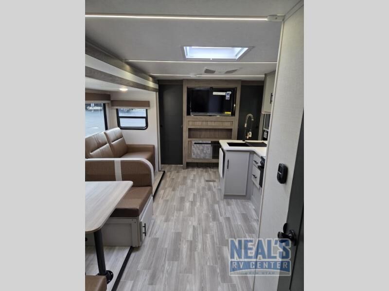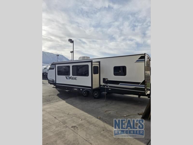 Each Vibe travel trailer by Forest River includes Hyper Lyte construction and a durable laminated "Aluma Frame" for years of use. The heated and enclosed underbelly allows you to extend your camping season, and the walk-on truss roof with XTRM PVC roofing will be easy to keep clean. Inside, you'll enjoy the custom built cabinetry, solid surface thermofoil wrapped kitchen countertops, and ultra bright LED lighting throughout. These models also include cable and satellite prep and a digital TV antenna with a booster so you can stay connected to the outside world if you choose. Make the easy choice and choose a Vibe travel trailer today!