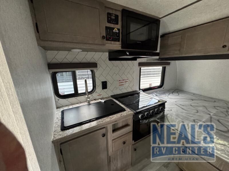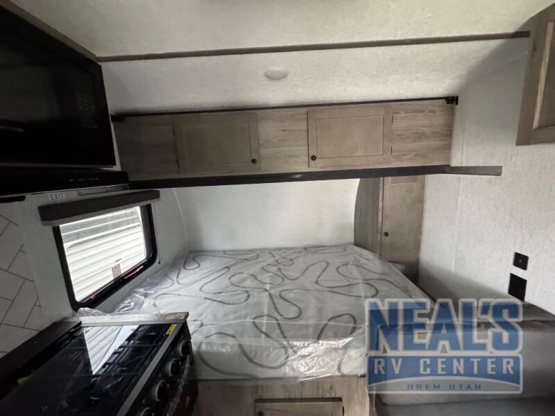 THE 2025 SOLD. 2026 MODELS ARE AVAILABLE!!! This travel trailer is perfect for couples who want to getaway together! The front bed offers a comfortable place to lay your head at night. When you're not using the booth dinette to enjoy a meal that you prepared with the three burner cooktop with oven or playing a card game, you can transform it into an extra sleeping space. You can start your mornings feeling clean and fresh after showering in the tub with unwanted steam removed with the power roof vent.