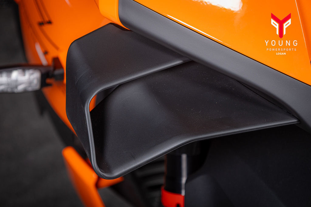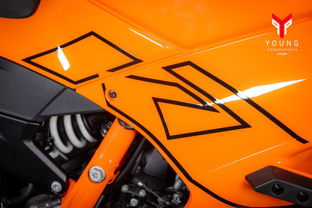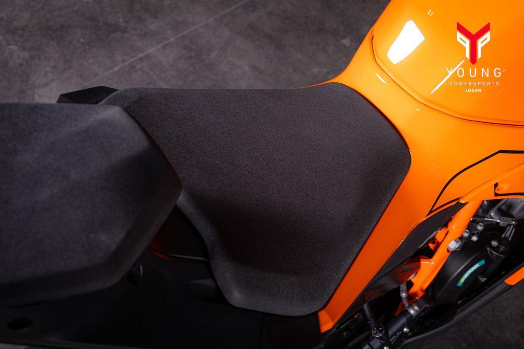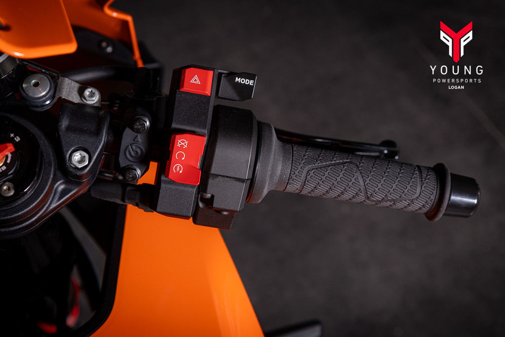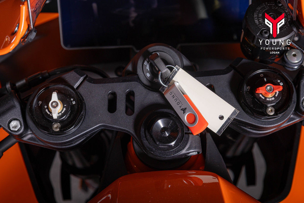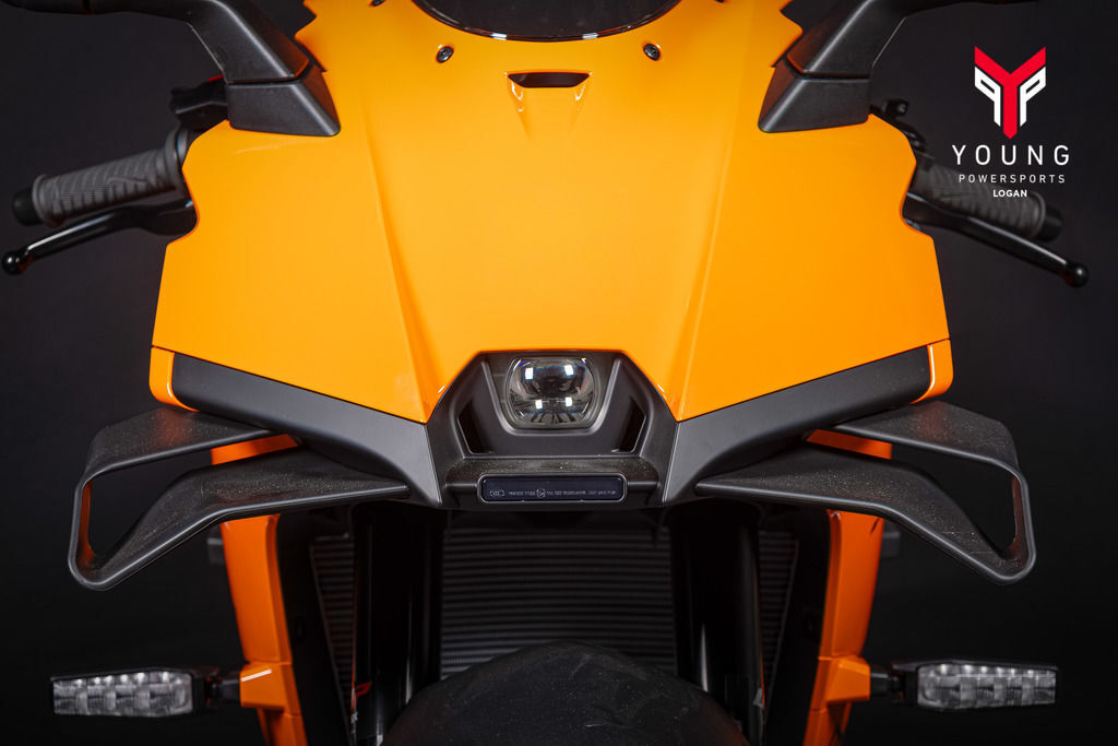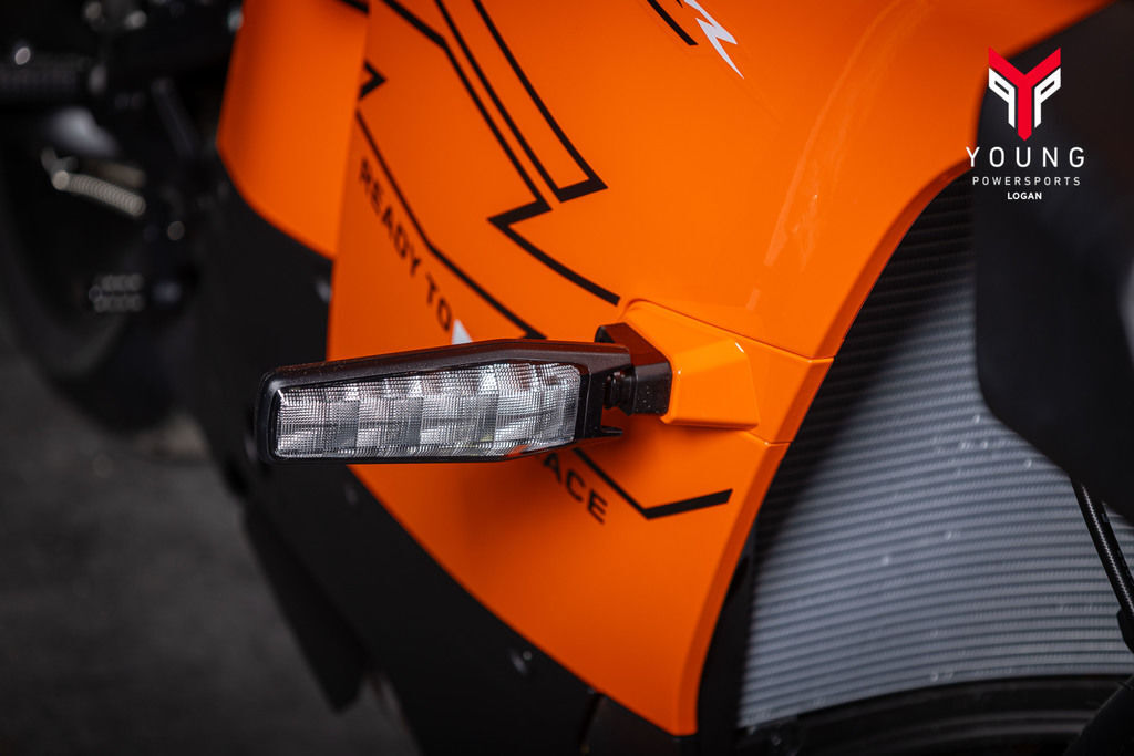 Be what you want it to be, be what you want to be. A pure-bred Supersport motorcycle like the KTM 990 RC R is a rare piece of high-tech clay, waiting to be shaped and customized for road or race. From the fully adjustable WP APEX front suspension to the movable footpegs and to the myriad of Ride Modes and settings as well as a gallery of KTM PowerParts accessories and additions, the choice is vast when it comes to dialing in the ideal sport-focused set-up. Commitment is the final ingredient to power ahead of the pack.