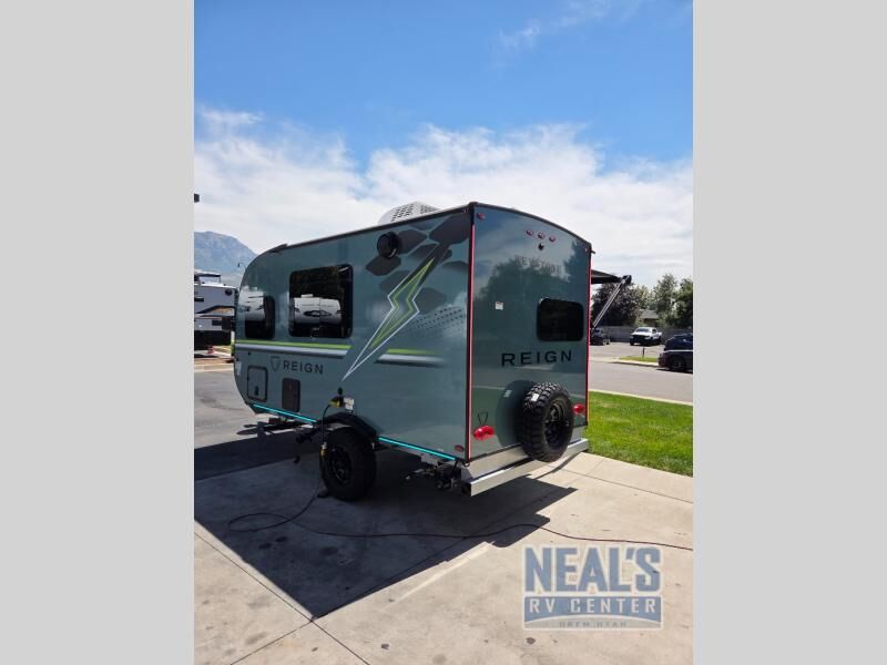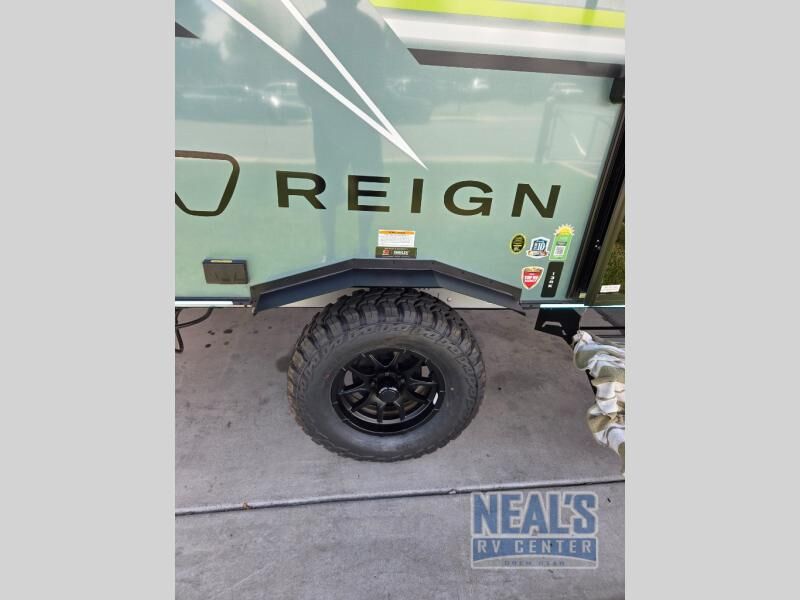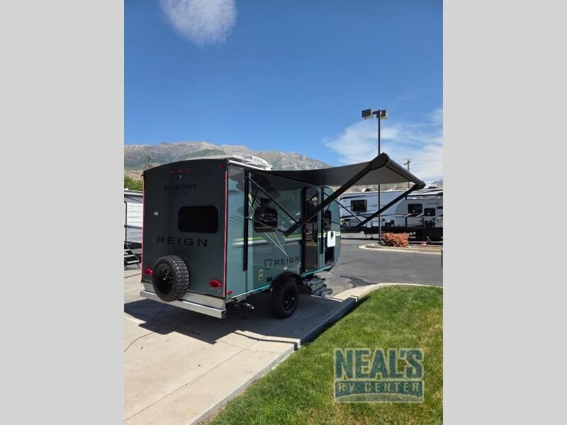 The Reign travel trailers by Keystone are premium single-axle units that are sure to make an impression at the campground. Each one is built with an exclusive automotive-finished aluminum exterior, a walkable roof, and a 100% composite floor for added durability. There are also tinted safety glass windows, quick drop stabilizer jacks, and an exterior shower with hot and cold water. The European inspired interior design is unique and cozy, and the 78" interior height will give you plenty of space to move about. You will also enjoy the ultra bright LED light strip, along with blackout night shades, and many more interior comforts.
