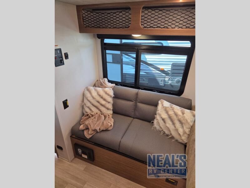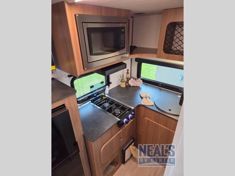 This travel trailer is ideal for weekend getaways or extended road trips! The full bathroom provides all the amenities you need, while the spacious 54" X 74" bed ensures a restful night's sleep. Moreover, overhead cabinets offer ample storage for your belongings, and the TV provides entertainment for downtime. The refrigerator keeps your favorite snacks and drinks fresh, and additional overhead cabinets offer extra storage. In addition, the 9' awning provides shade and protection from the elements, creating a comfortable outdoor living space.