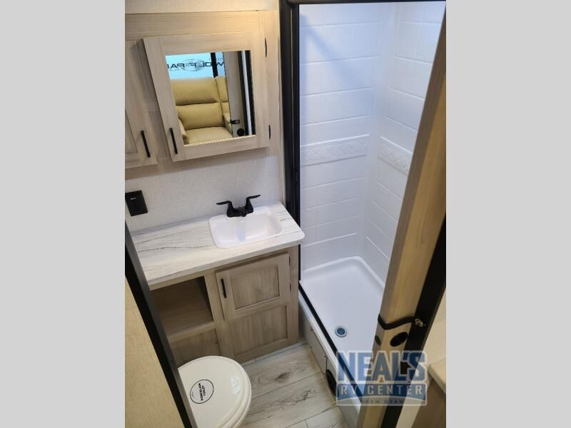 LUXURY BUT AT A GREAT PRICE! Perfect Size Couple Coach! 200 Watts of Solar on the Roof! 2 Slide outs! Heated And Enclosed Underbelly! 81" High Ceiling! On Demand Water Heater! Bathroom complete with Shower, Toilet & Sink! Fully Finished Storage Compartments! Power Awning, Roof A/C, 3 Burner Cooktop, Microwave, Outside Shower, Black Tank Flush, and much more!