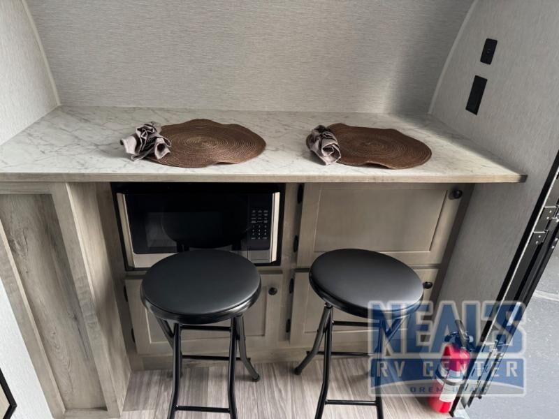 It will be amazingly easy to get to the campsite with this Sunray travel trailer! You can use the dinette during the day as a dining location and at night as a sleeping space. Make your world-famous pancakes on the two-burner stove top outside, and spend some time washing dishes afterwards in the indoor and outdoor sink. Also on the interior, you will find a private toilet which will be ultra convenient when you wake up in the middle of the night and need to go to the bathroom. You can add the optional Classic Package featuring 14" tires instead of the off-road tires, color matching rims with Moon Caps, and Retro Decor and Diner-Style Countertops.
