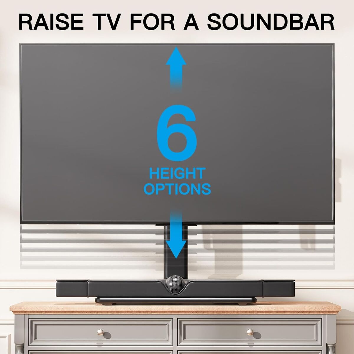 WIDE COMPATIBILITY: Fits most 32-65 inch (including 32''37''39''40''42''43''48''49''50''54''55''60''65'') LCD, LED, OLED, flat screen TVs up to 88 lbs including Sony, Samsung, Vizio, Sharp, TCL, LG, and more. Great solution for the bedroom, game room, classroom, hotel room, or office. Compatible with VESA patterns 100x100mm (4''x4'') to 400x400mm (16''x16''). 70° OF SWIVEL: Conveniently swivel 35° left or right to choose the most comfortable viewing angle. Easily change the screen direction in rooms with multiple seating areas. ADJUSTABLE HEIGHT: Choose from 3 height adjustment positions between 12.05” and 15.98” to install the TV plate. TV brackets have 2 height adjustment options 2.17'' apart. STRONG AND DURABLE: This tabletop TV base is designed with strong steel material and a heavy-duty tempered glass base. Features cable management clips on the back of the unit to keep wires neat and organized. EASY ASSEMBLY: Save the cost of professional installation and avoid potential wall damage by choosing a TV stand over a mount. Instruction manual and hardware is included with each unit. Please contact our US-based customer support team if you have any questions or need assistance. 146050 12-1-25 00.1 rt36