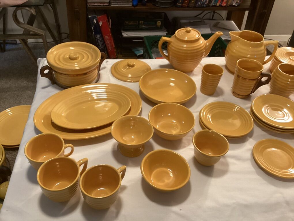 ApplePayI have over 600 different pieces of vintage Bauer Pottery. Multiple colours many different pieces. If interested in one specific piece or a full set please hit me up and we can work it out