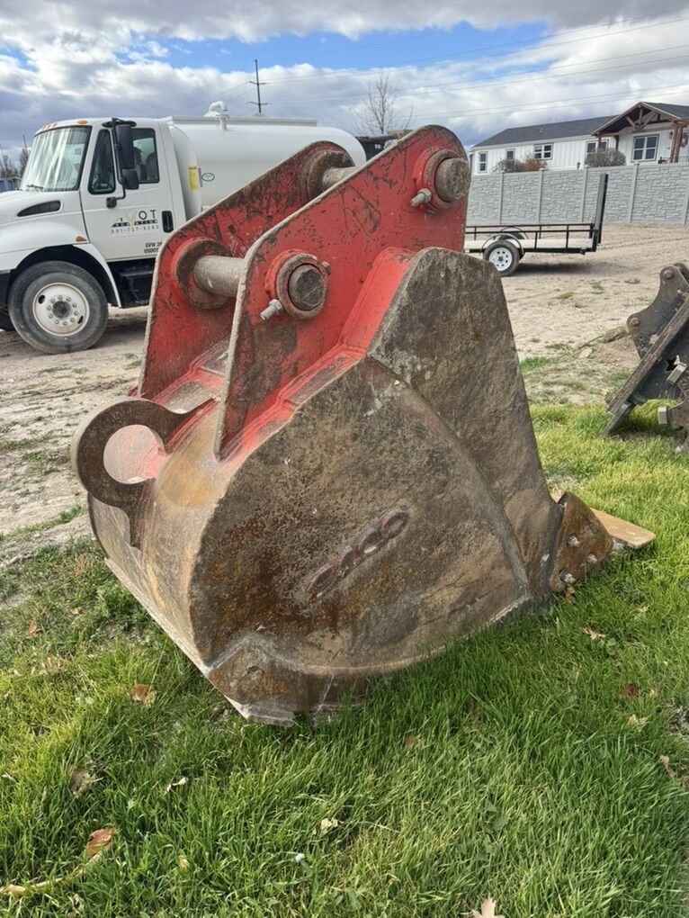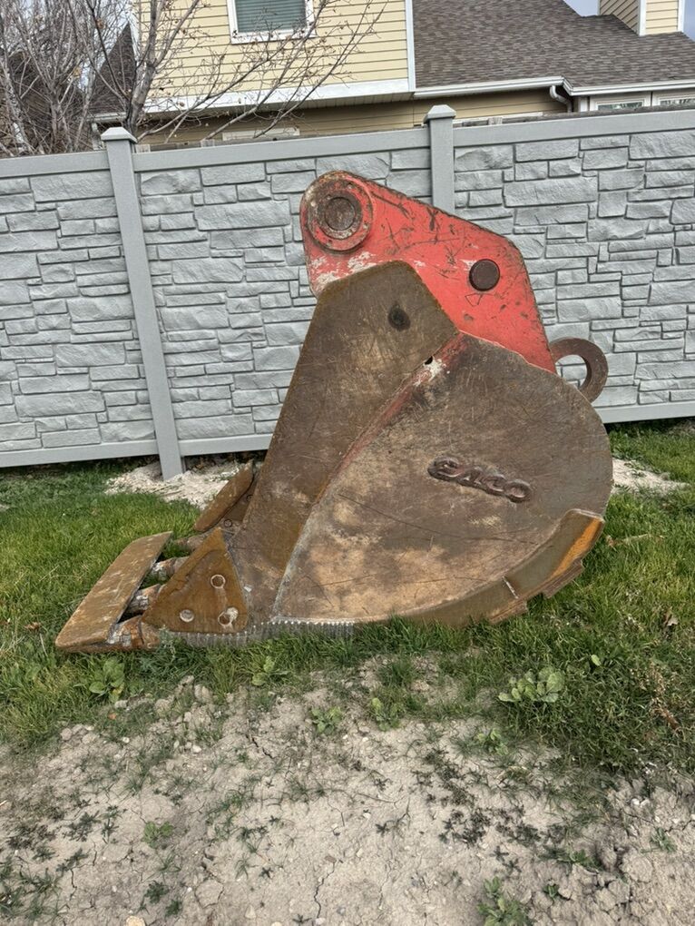 Esco excavator bucket with butter bar. Will likely fit many different machines.