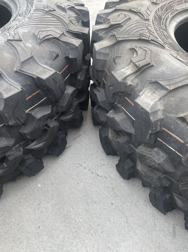 (2 sets 4 tires each) Maxxis Carnivore 31X10XR15 factory take offs. SXS tires.