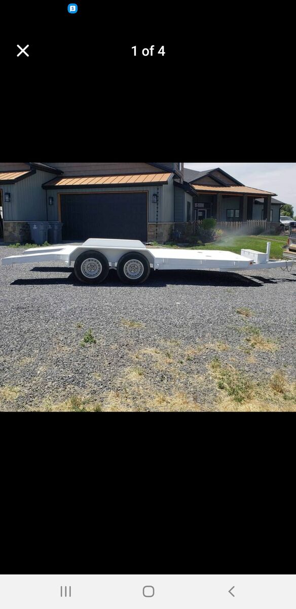 Custom built car & toy hauler. New tires, 2 5/16 Ball, 8,000 lb jack stand, storage box, loading ramps, total length 23 FT 4 IN, 18 FT Steel Diamond Plate Deck, 7 FTwide. Total width of trailer and axles 102 inches. Tandem axles.