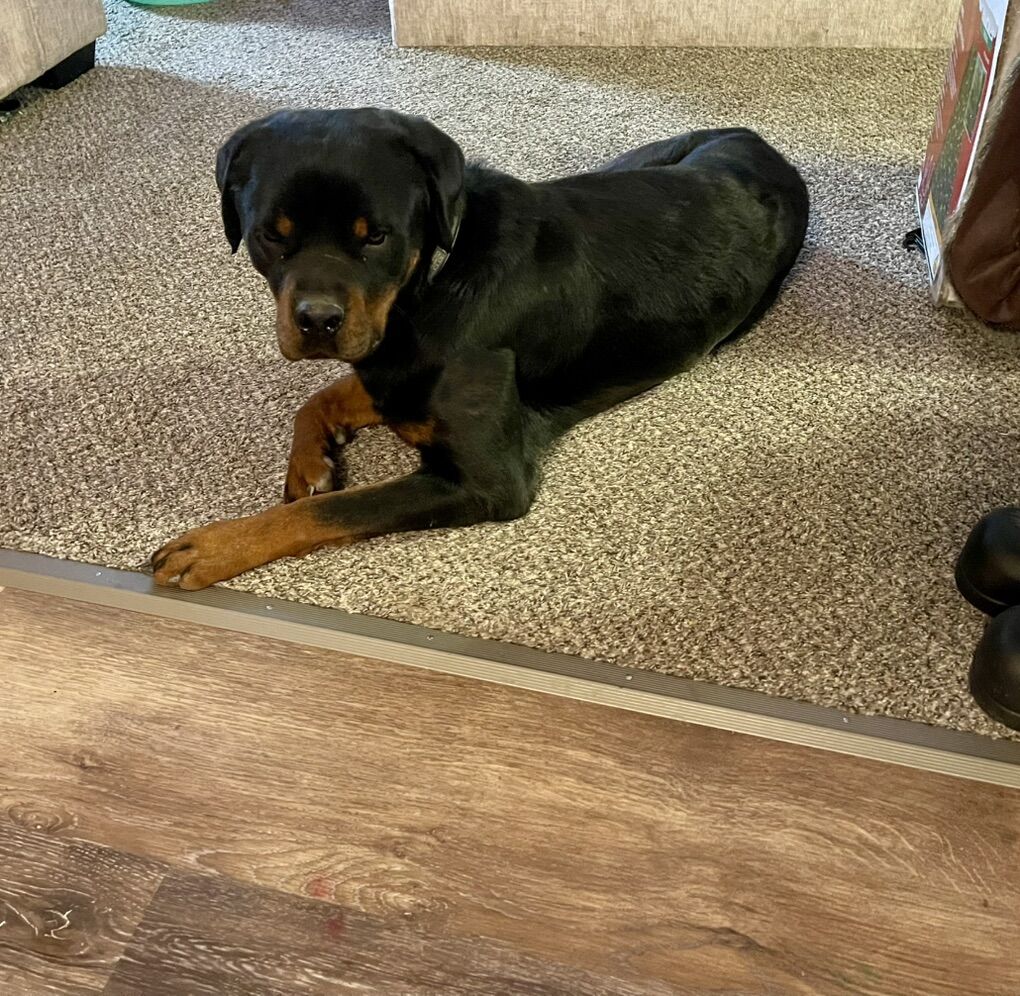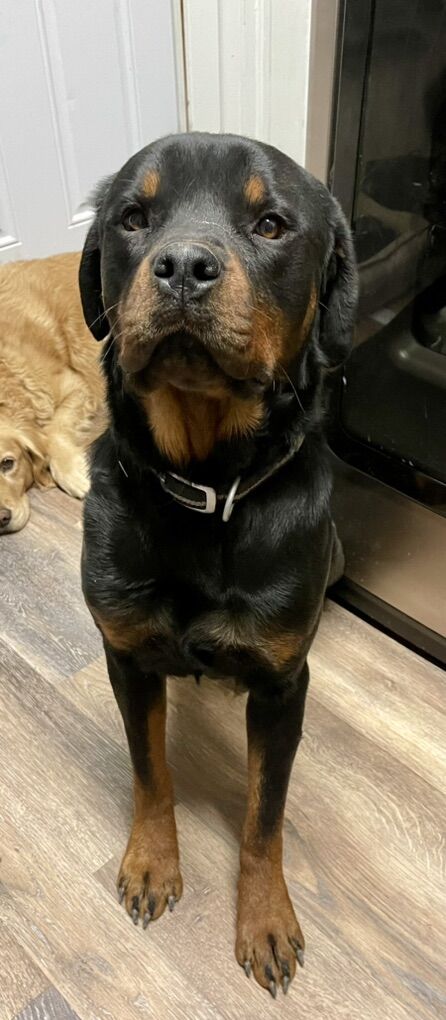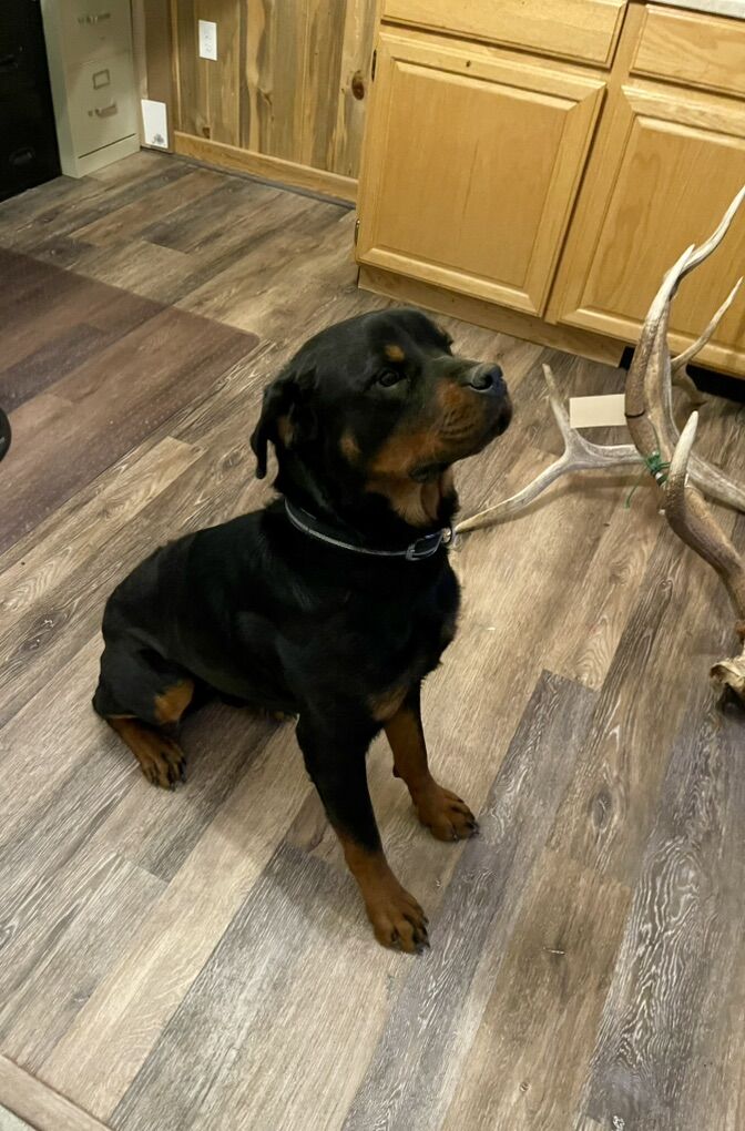This is Bruce. He’s a large beautiful mahogany German Rottweiler. He’s AKC Registered. He’s the sweetest dog. Naturally protective, goofy, and a giant teddy bear.