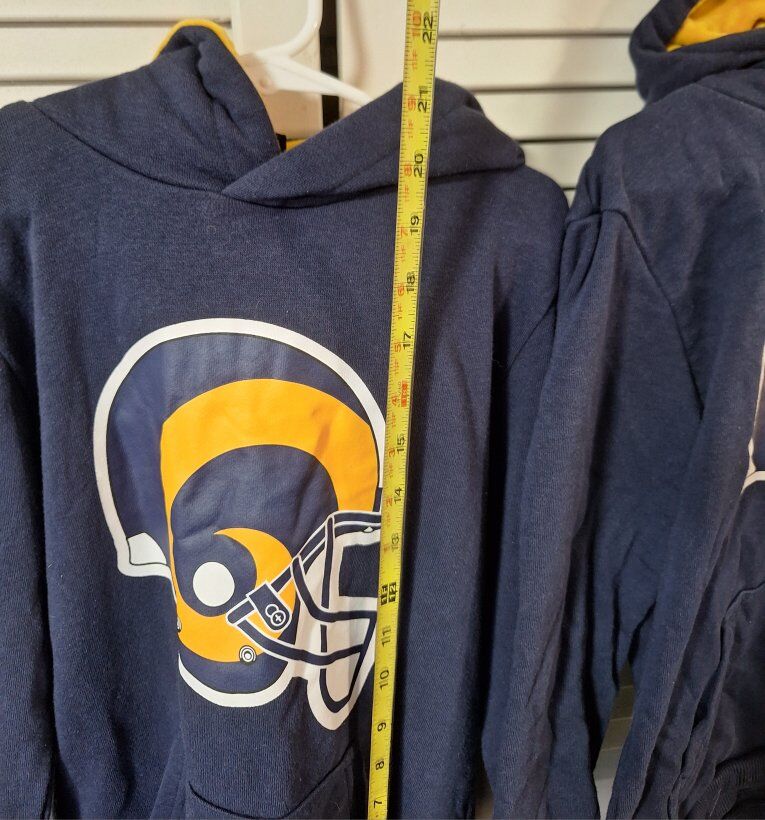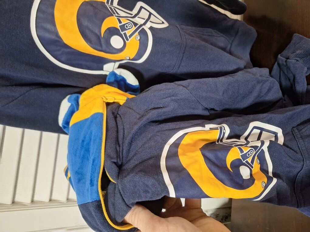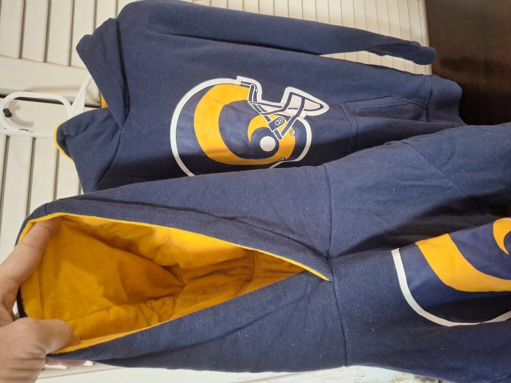 CashAppFabulous Los Angeles Rams-themed full-zip hoodie plushie for kids in size 8. Made from fleece fabric with a polyester lining, this lightweight hoodie features a classic sports theme with the team's logo as accents. Perfect for casual occasions, this hoodie is a must-have for young fans of the Rams! Both new without tags never worn and comes from a smoke and pet free environment. Thanks for looking!