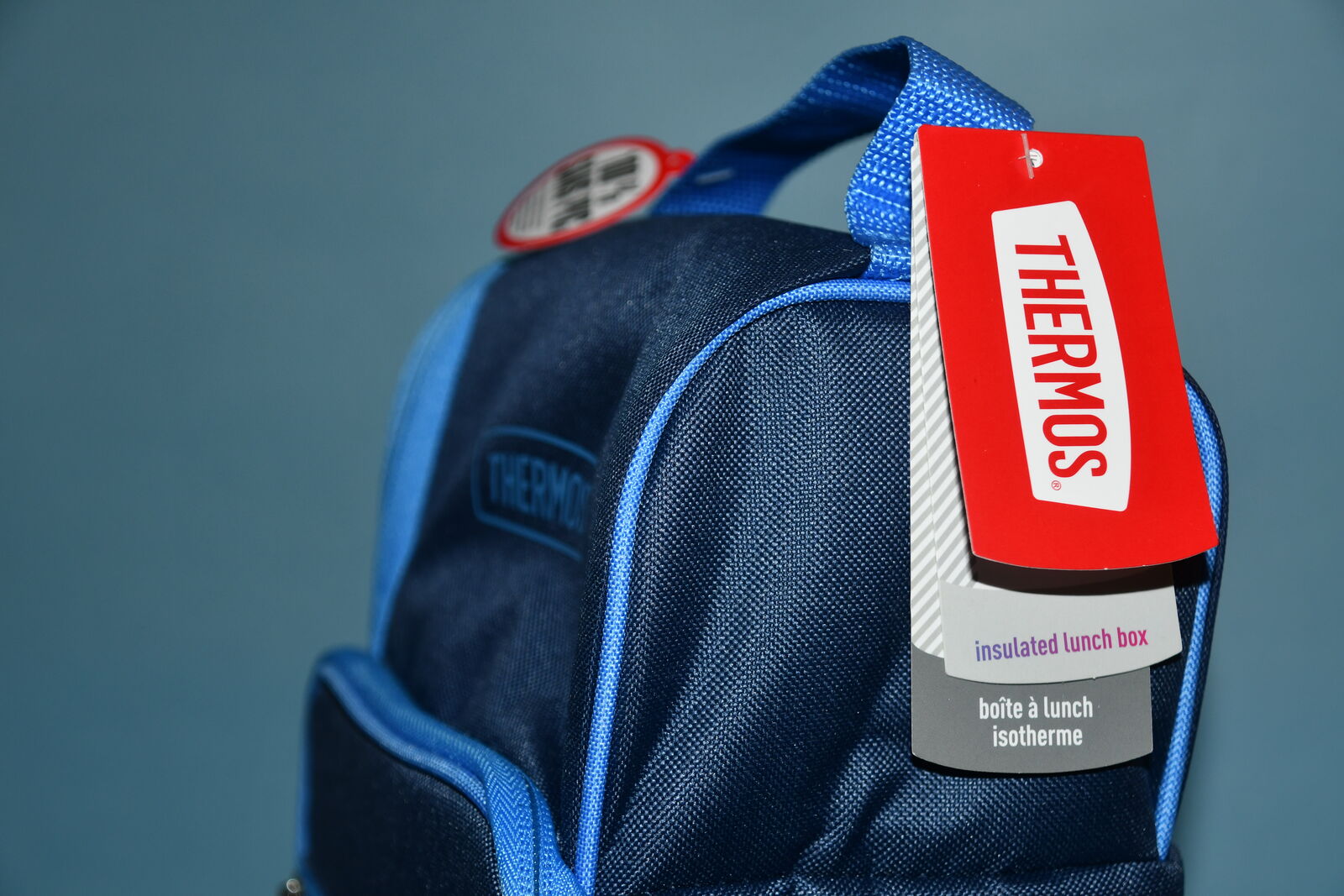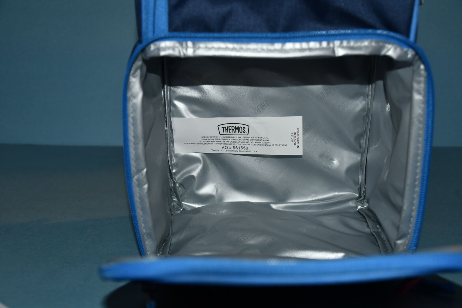 This NWT "THERMOS" INSULATED LUNCH BAG is about 5" x 11" x 8". It is BLUE. It has 3 zippered compartments. Our home is smoke free. Questions??? Please ask. We are located in Plain City. Cash only please.