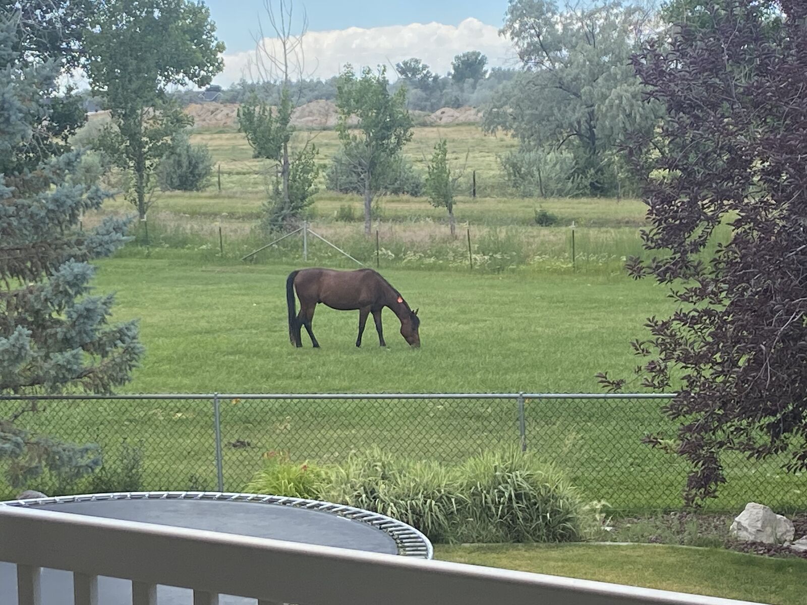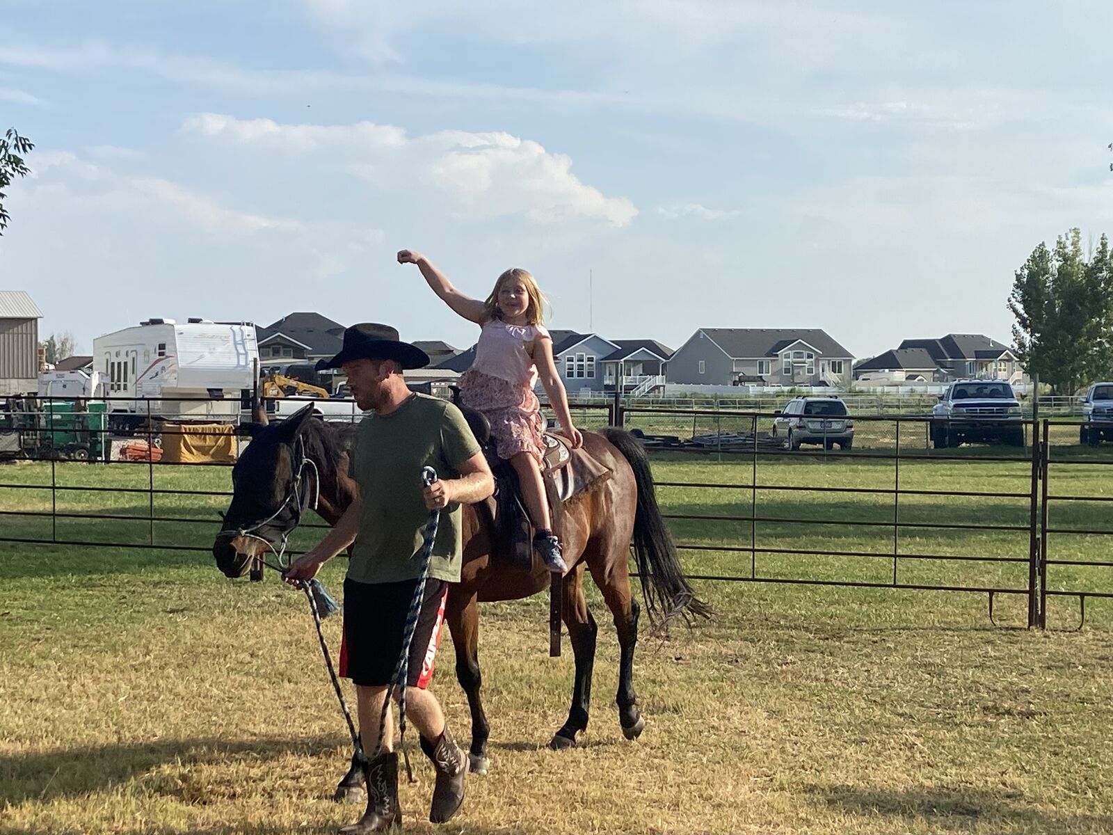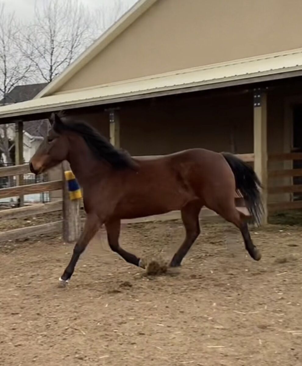Good-minded young horse with a nice start. Easy to handle (catch/lead/tie/load), stands for farrier. Green but willing—has a lot of potential.