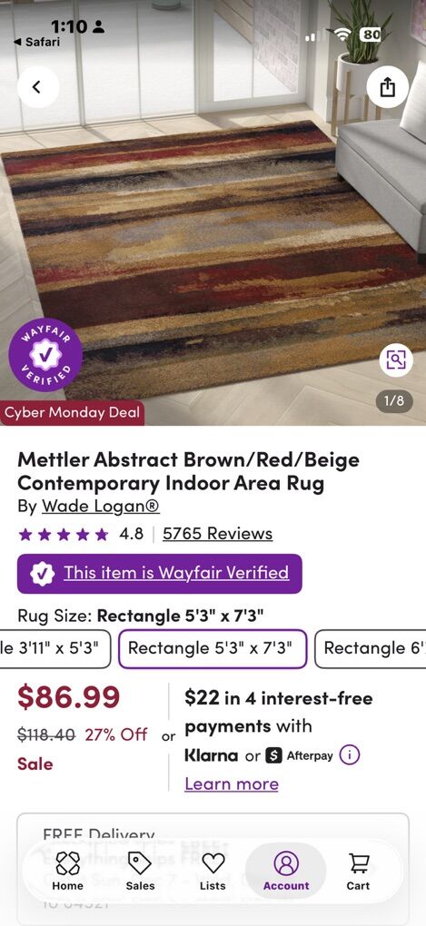 PayPalMettler Area Rug 5’3”” x 7’3”