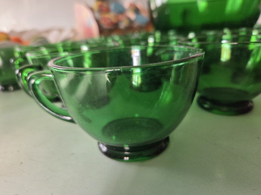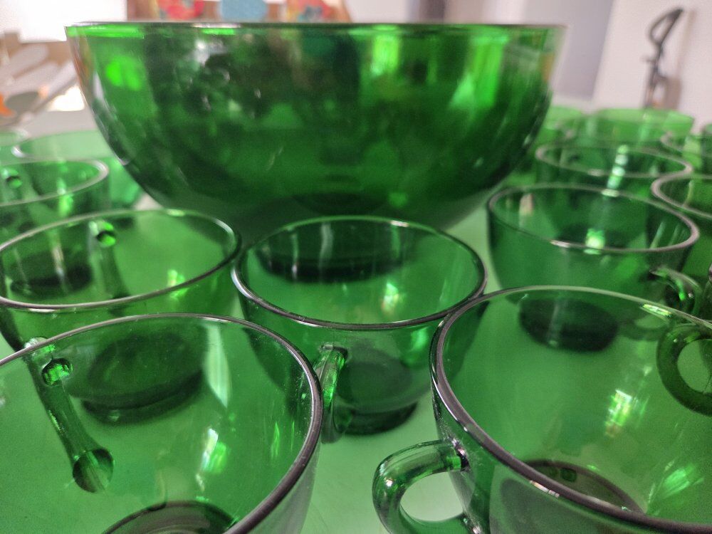 vintage anchor Hocking Forest green punch bowl set
