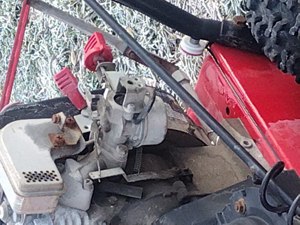 Yard machines 5 HP 22" snowblower need gas line and carburator cleaning to work properly Start with starting fluid and die. For parts or fix Carburator cover is been lost See pictures