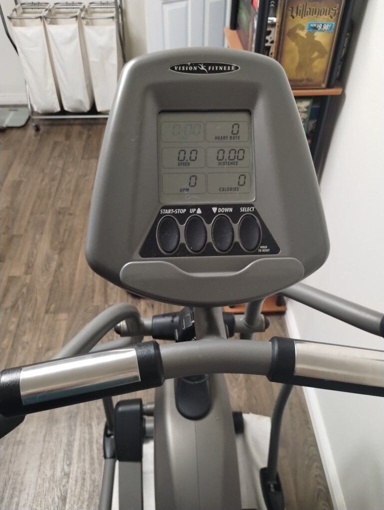 The Vision Fitness X1400 elliptical trainer is an entry-level machine known for its smooth, quiet operation, featuring magnetic resistance, a weighted flywheel, and a low-impact stride, with a console providing workout feedback like time, speed, calories, heart rate (via contact sensors), and various program profiles (e.g., manual, interval, weight loss) to help users track progress and stay motivated.