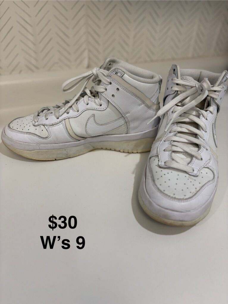 VenmoNike White High Tops Dunks Women’s Size 9 Barely used I have a shoe addiction haha!