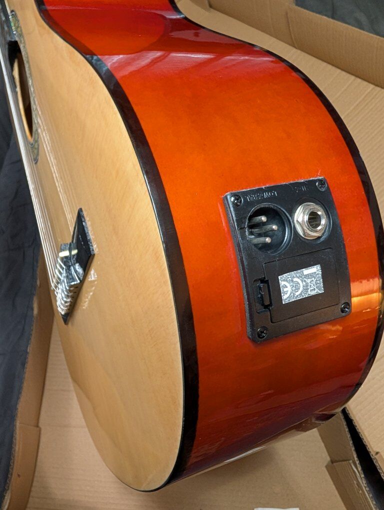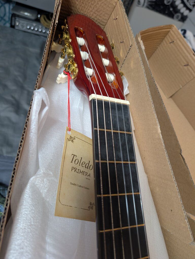 CashAppBrand new Toledo Primera Series classical acoustic-electric guitar E-062E. Only opened to take pictures — never played. Spruce top Nylon strings (easy on fingers) Cutaway body Built-in tuner & EQ Original box & packaging included Perfect for beginners, students, fingerstyle, or anyone wanting a clean classical guitar with electric capability. Asking $120 Local pickup.