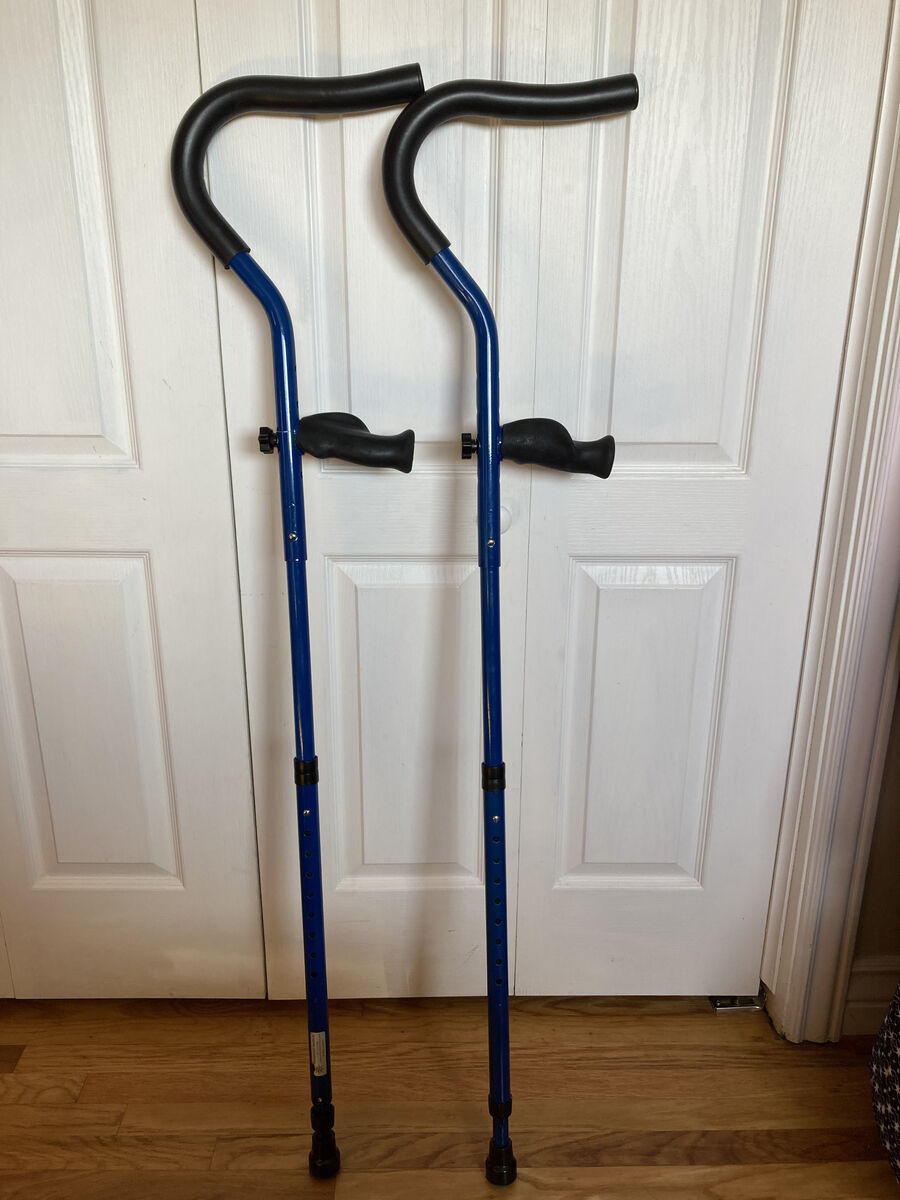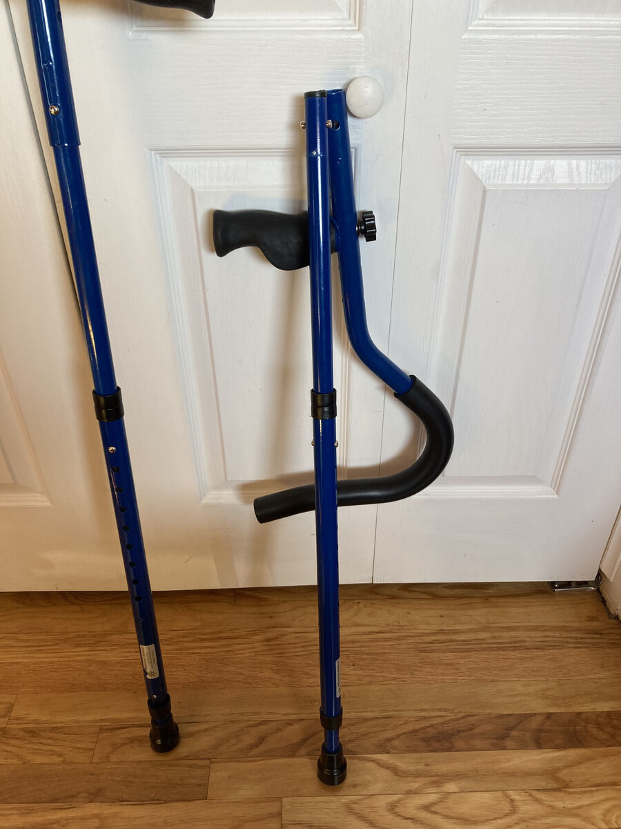Crutches also fold down to smaller size for travel, see photos. Spring assist and ergonomic handles for easy walking.