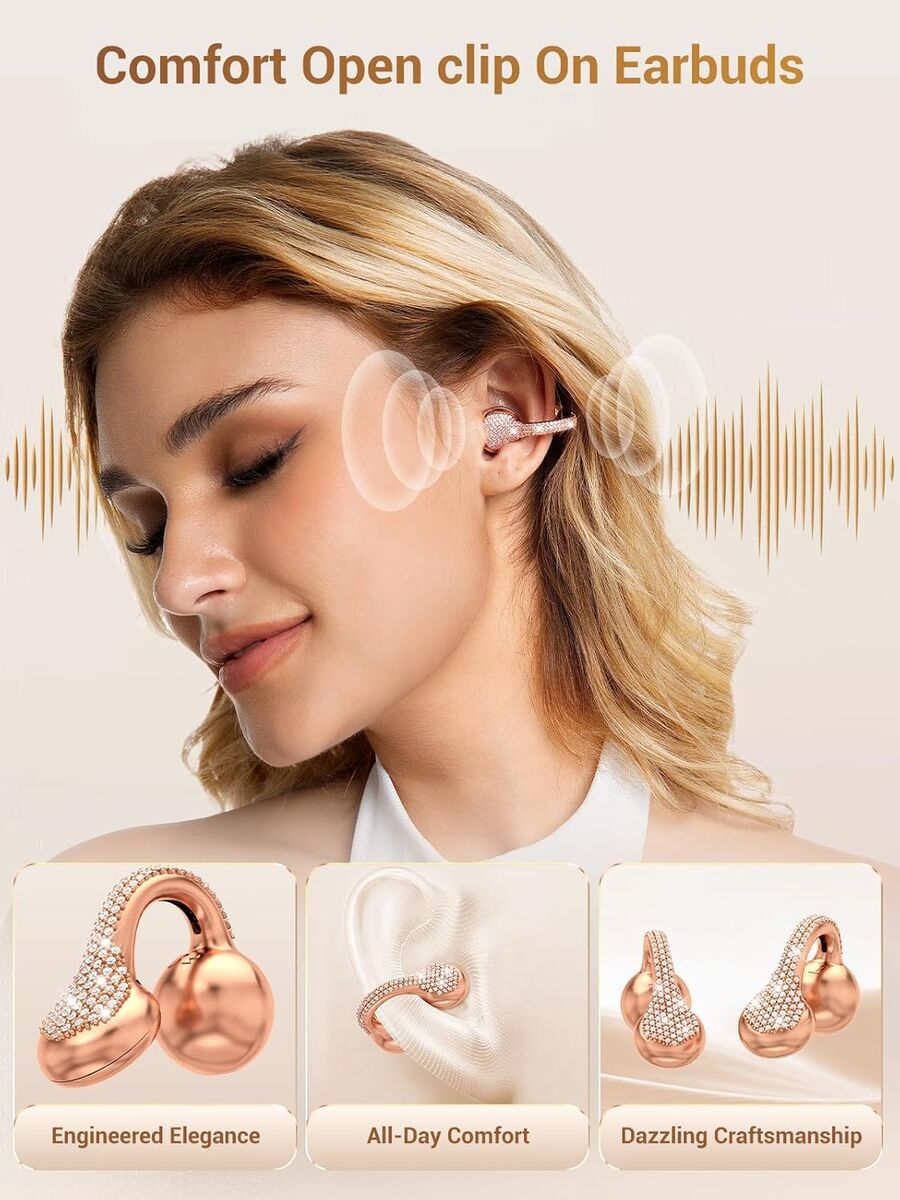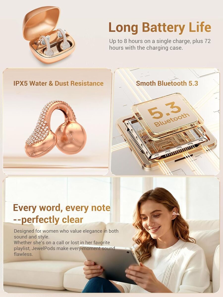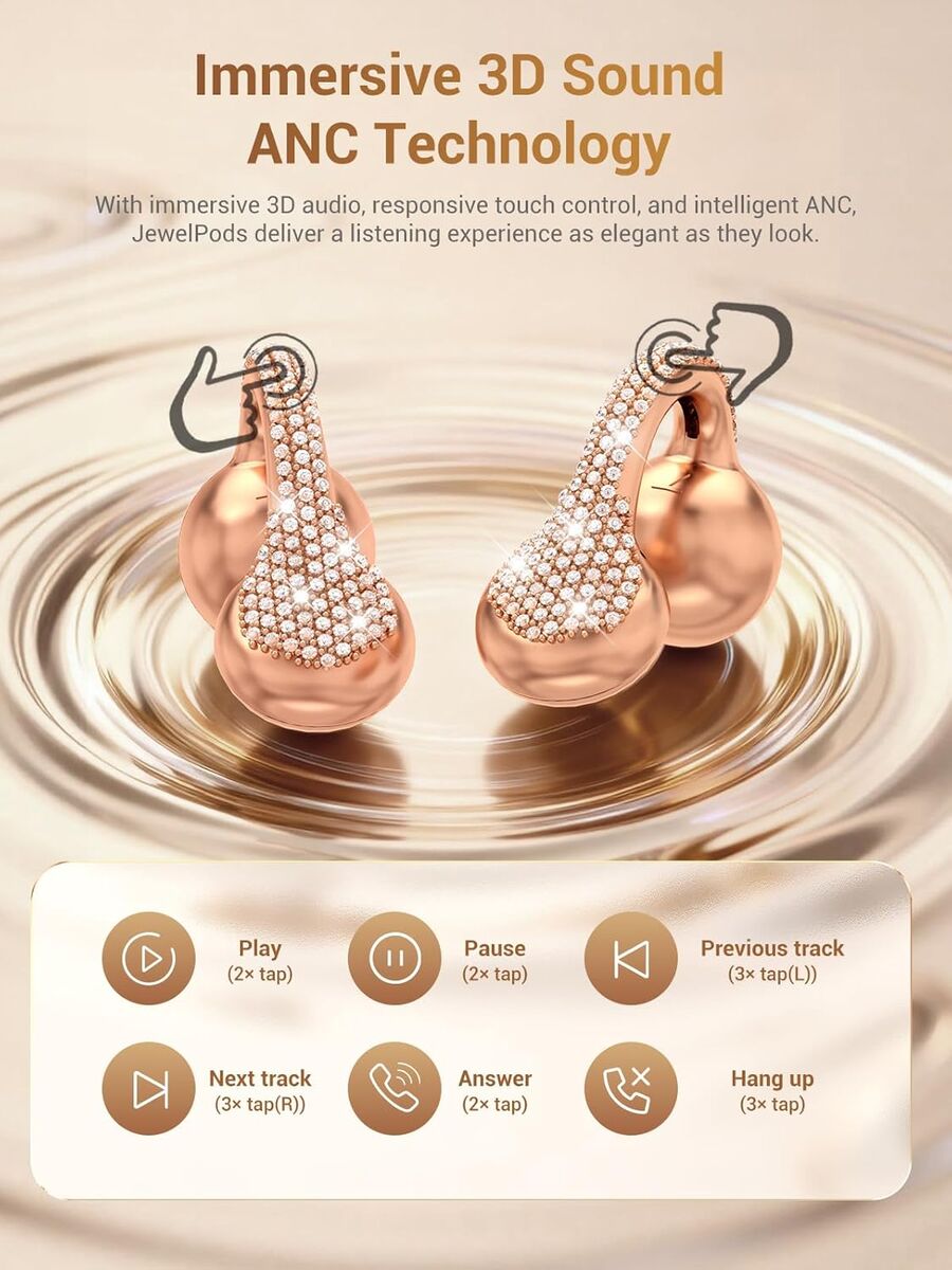 NEW IN BOX! JewelPods C01 Pro Open Ear Headphones,Clip-on Earbuds Wireless Bluetooth with Crystal,Secure,Lightweight, Comfort-Premium Audio-Water Resistant-Up to 72 hrs Play,Metallic Charging Case. PICK UP IN WEST VALLEY CITY, UTAH!