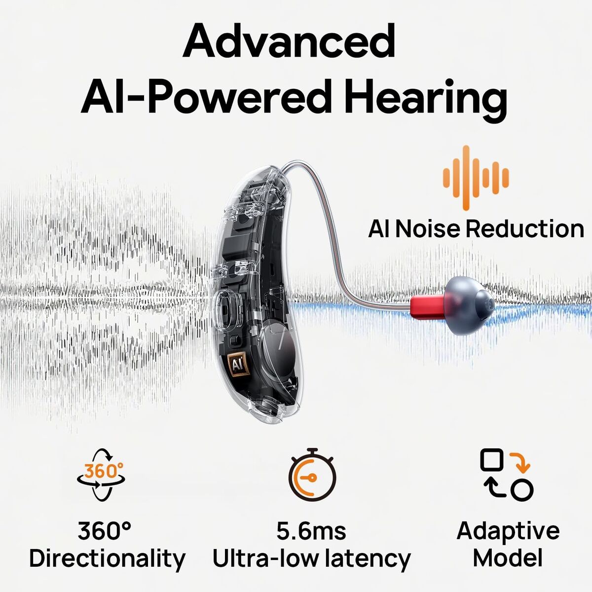 NEW IN BOX! OTC Hearing Aids, RIC800 Bluetooth Call iOS and Android Enabled, Wireless Rechargeable, AI Noise Reduction & App Control, Tinnitus Relief, Prescription-Grade Sound, Nearly Invisible (Silver)