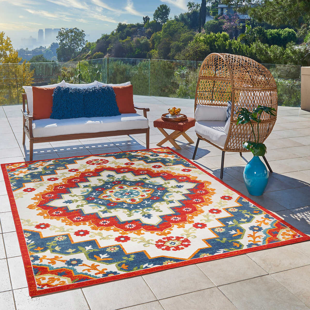 Toscana rugs serve beautifully indoors or outdoors. They have stylish looks to complement your indoor decor, plus hose-off ease of cleaning and water and sun resistance. Astrid and Biaritz rugs create dramatic space by showing off the art of weaving intricate flat patterns in tough cabled yarns. These easy-care rugs are great for any area of your home!