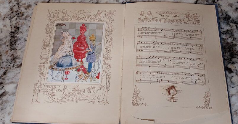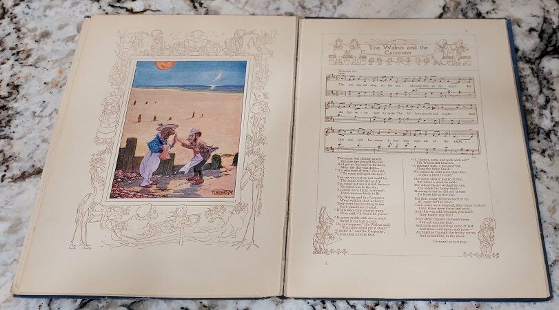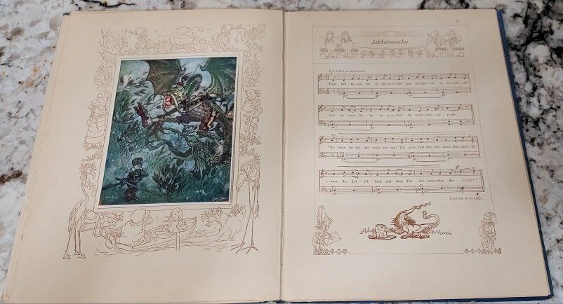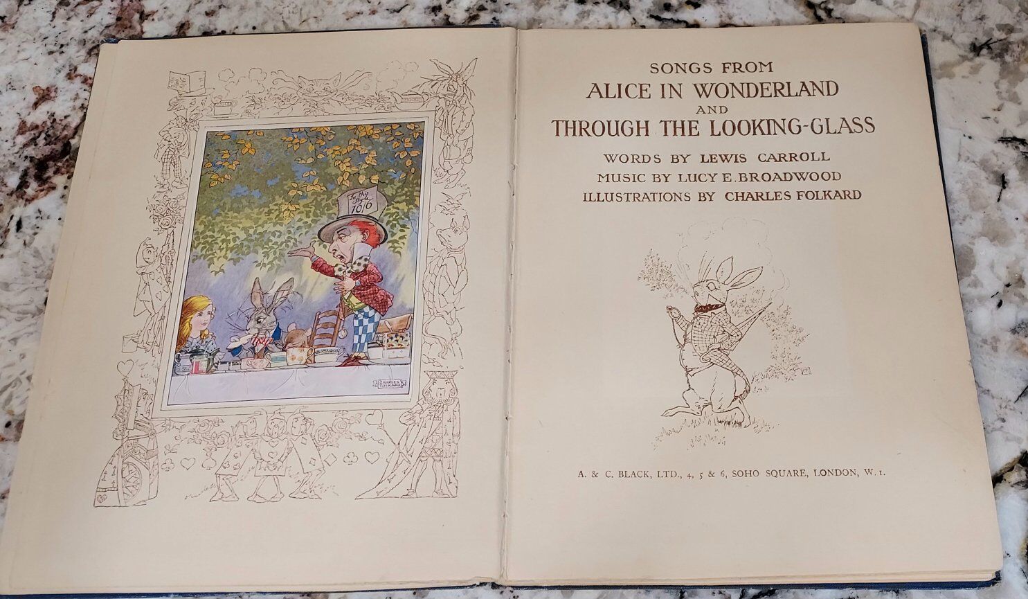 Rare Antique book, "Songs From Alice in Wonderland and Through the Looking Glass". 1921 1st ed. It has 11 of the illustrations in it by Charles Folkard. It does have some condition issues, the covers are a bit worn, the binding is starting to separate and there is one page loose, pages have normal age discoloration. Please text or message me if you are interested, thanks