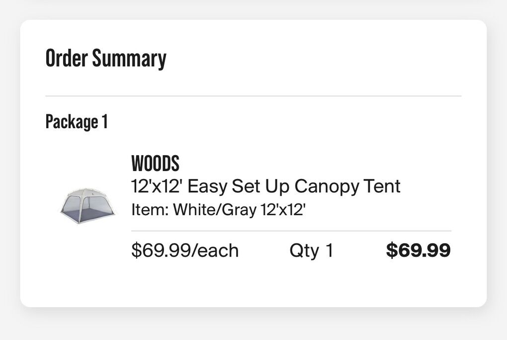 Woods Easy-Up Canopy Shelter – 12x12 Price: $50 (Firm) Brand new, still in the box, never opened. Perfect for camping, backyard shade, sports events, or outdoor gatherings. Quick setup, sturdy design, and great coverage. Pickup only. First come, first served.
