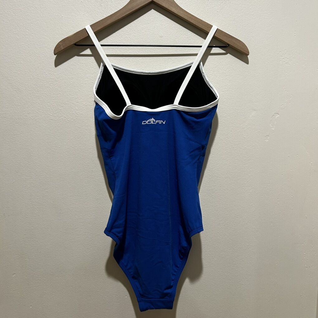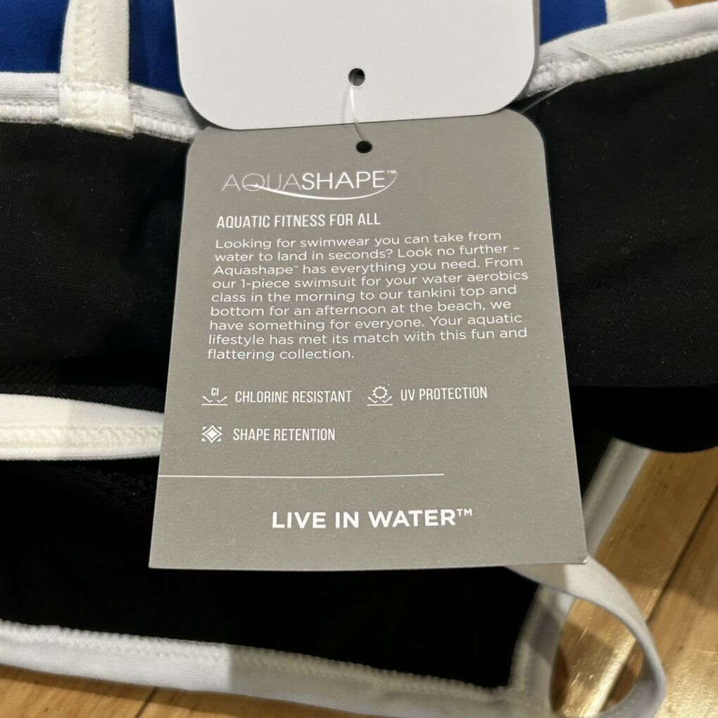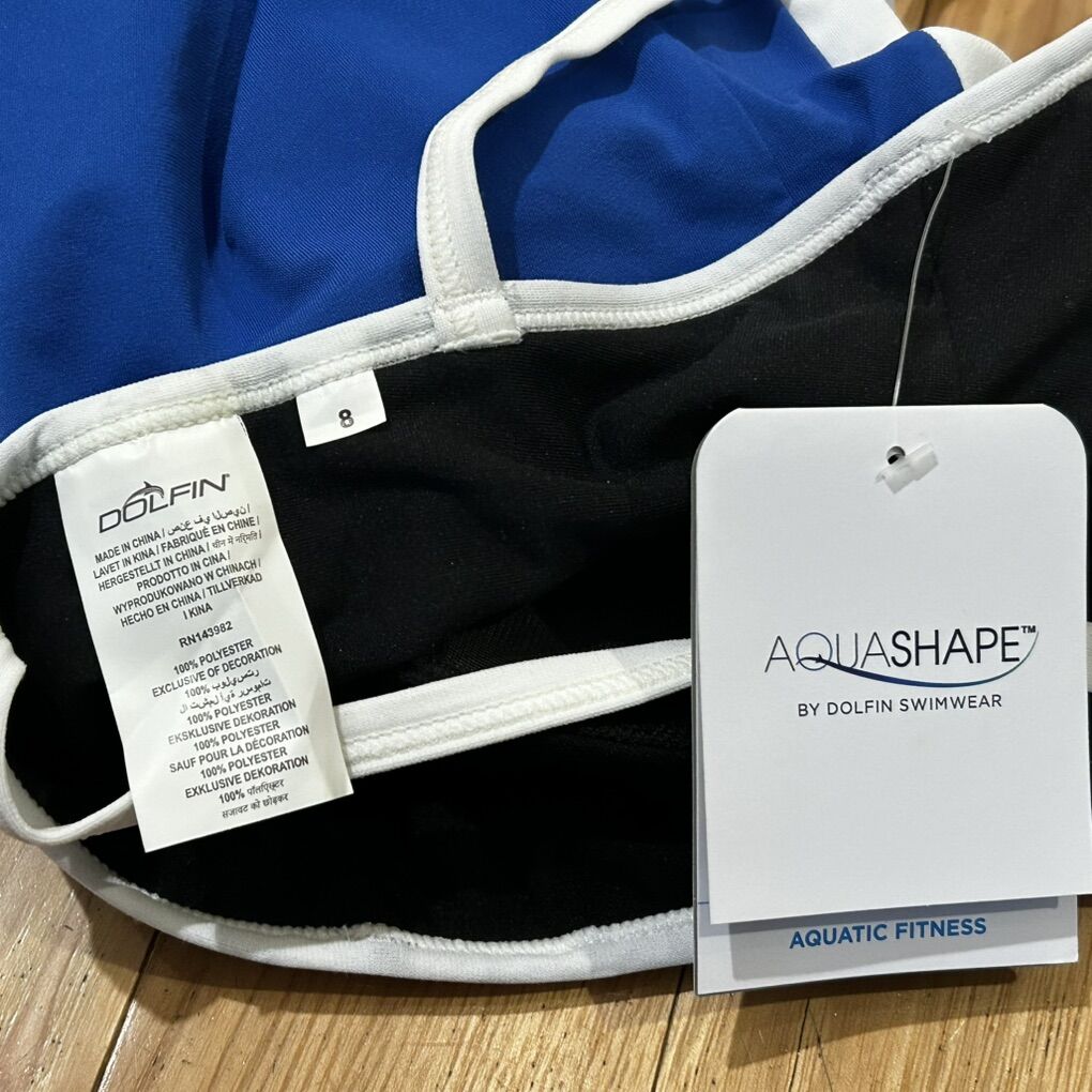 Dolfin Aquashape NWT Aquatic Fitness Straight Back Moderate Lap Royal Navy Blue with White Stripes One Piece Swimsuit - Women’s Size 8 - with tummy control and hip and thigh minimizer - brand new with tags.