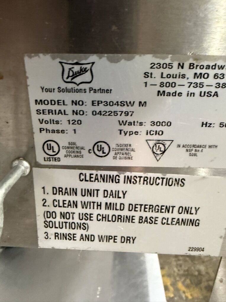 Used Duke 4 Wells electric 120 Volts steam table in great working condition ,with wheels for easy moving Was $1500