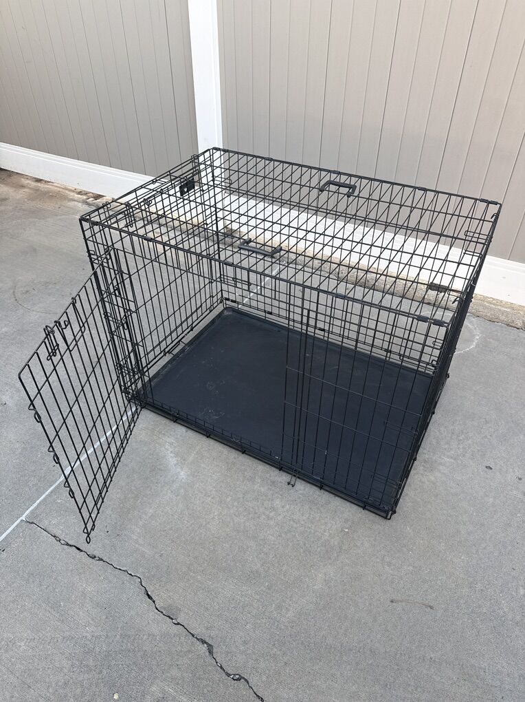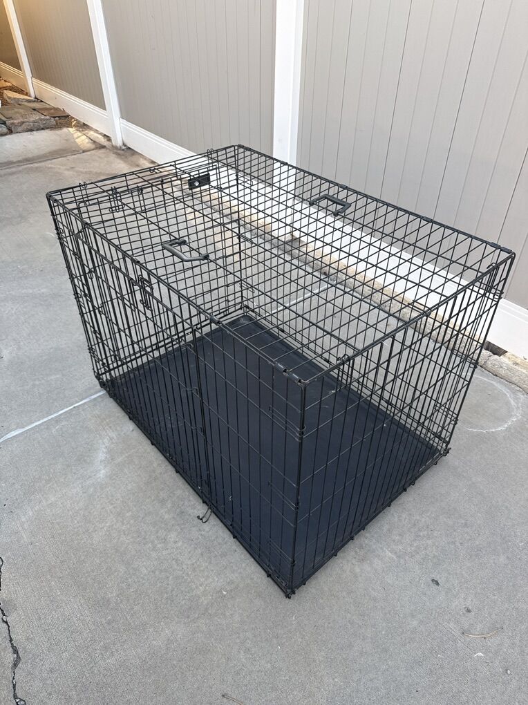 Venmo42” Large double door wire dog kennel with removable tray for easy of cleaning 42 inches long by 28 inches wide by 30 inches tall.