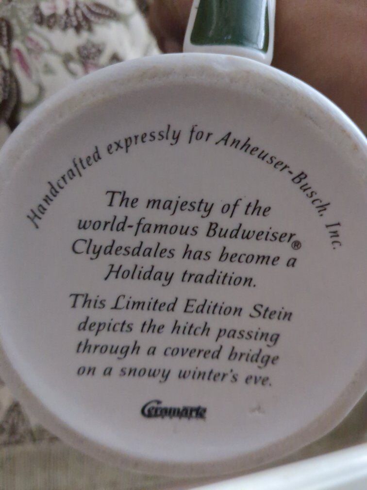 Venmo1984 Budweiser holiday stien that measures 6 3/8" tall. Perfect for anyone who wants a Budweiser stien collection. $15