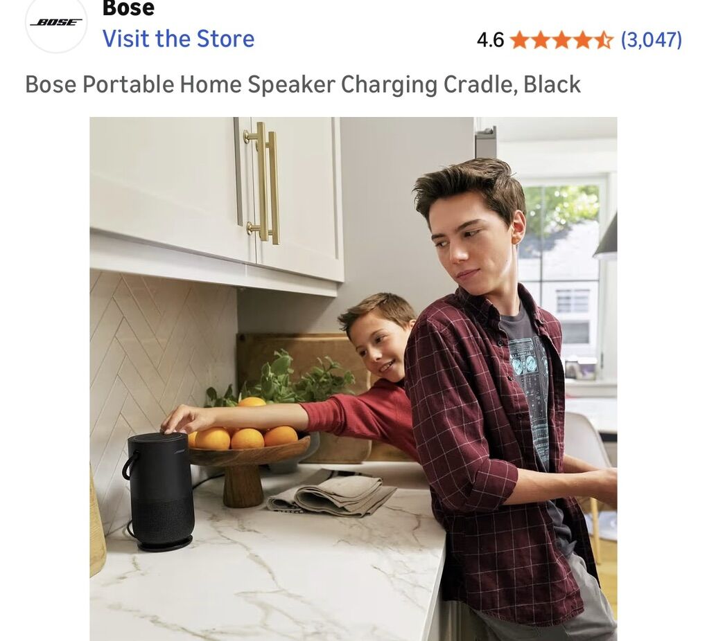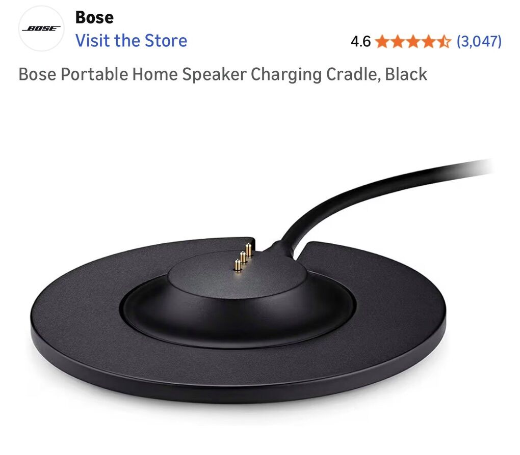 Works with Bose portable home speaker Keeps speaker charged and ready to go. Serves as a convenient home base for your speaker. Lets you play music while charging. Uses Power cable included with Bose portable home speaker (sold separately)