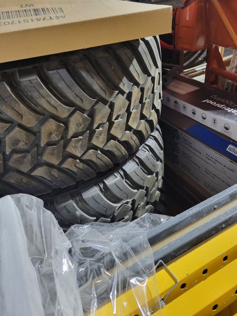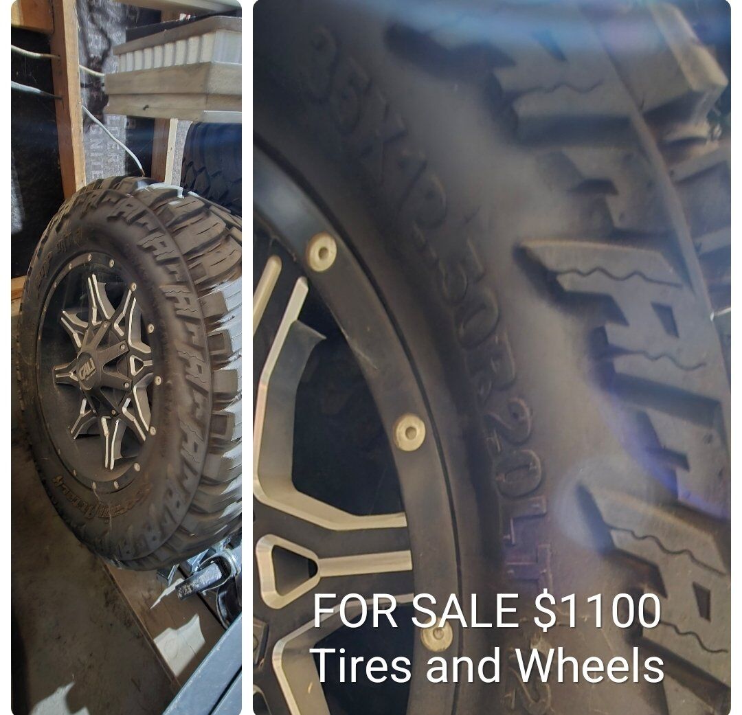 VenmoTerrain Attack 35x12.5xR20LT. Less then 100 miles on them. The wheels are a universal bolt pattern. 6 x 5.5 and 6x 5.25. The wheels do come with the tires. Price for both $1,100
