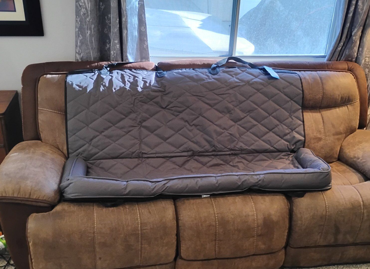 Venmonew dog pet bench seat cover new machine washable has slots for seat belts to come through hold down straps bottom is non-skid 59 in wide $50 cash or venmo
