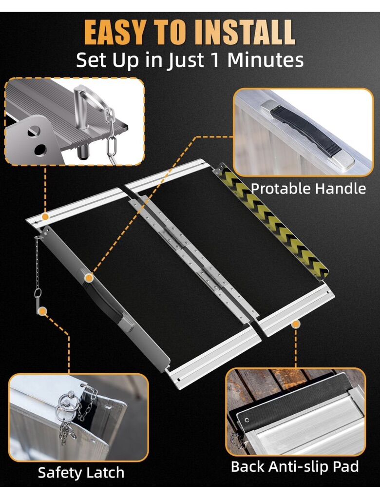 VNN Portable Wheelchair Ramp 2FT, Non-Slip Aluminum Ramps for Wheelchairs for Home, Handicap Wheelchair Ramps for Home Steps, Aluminum Loading Dock Plates