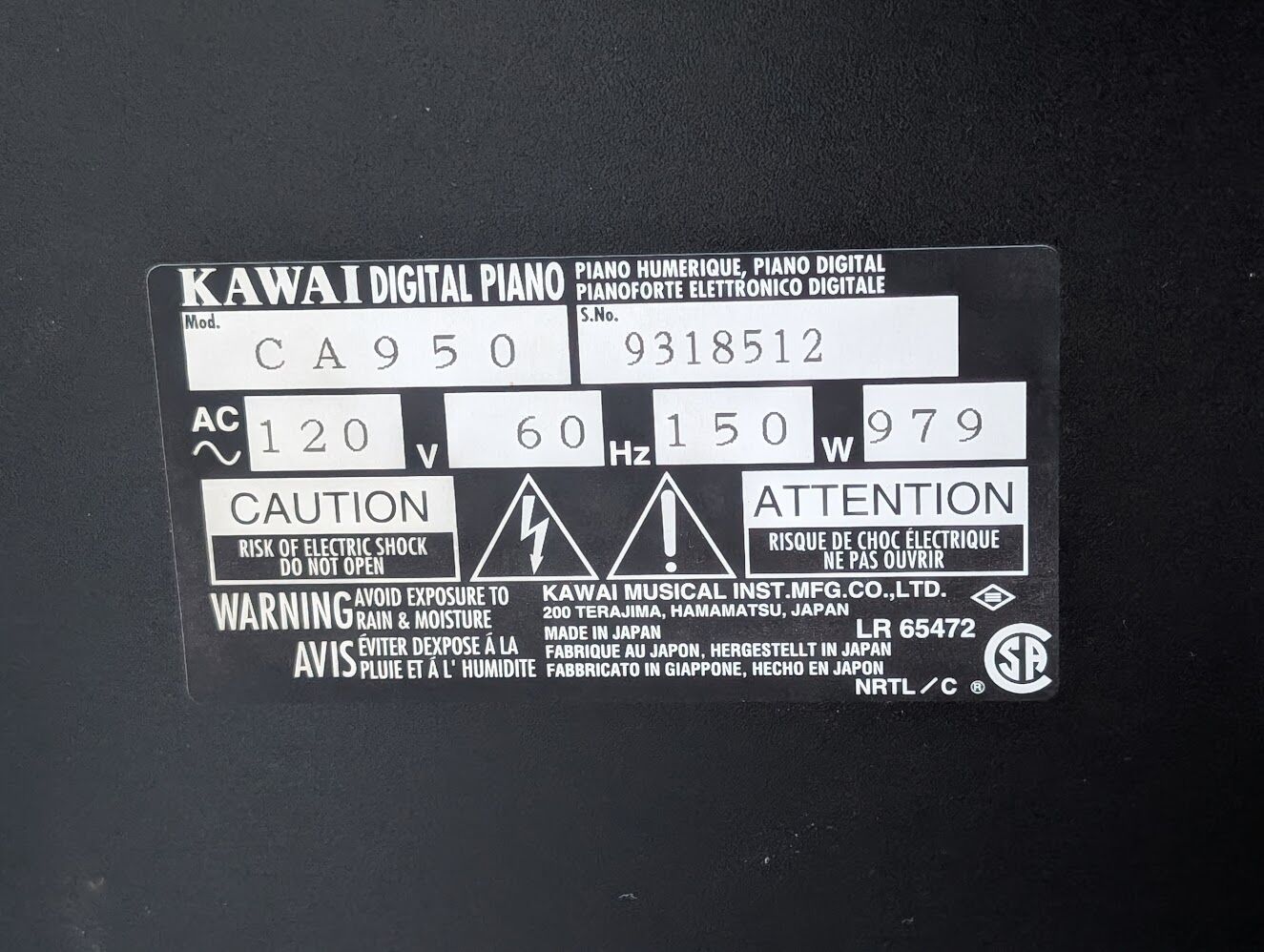 VenmoKAWAI Digital Piano model number CA950 for sale. This was from my family home. Since family was doing renovations, this needed to be moved but ultimately decided to sell it. It was pretty expensive back in the day.