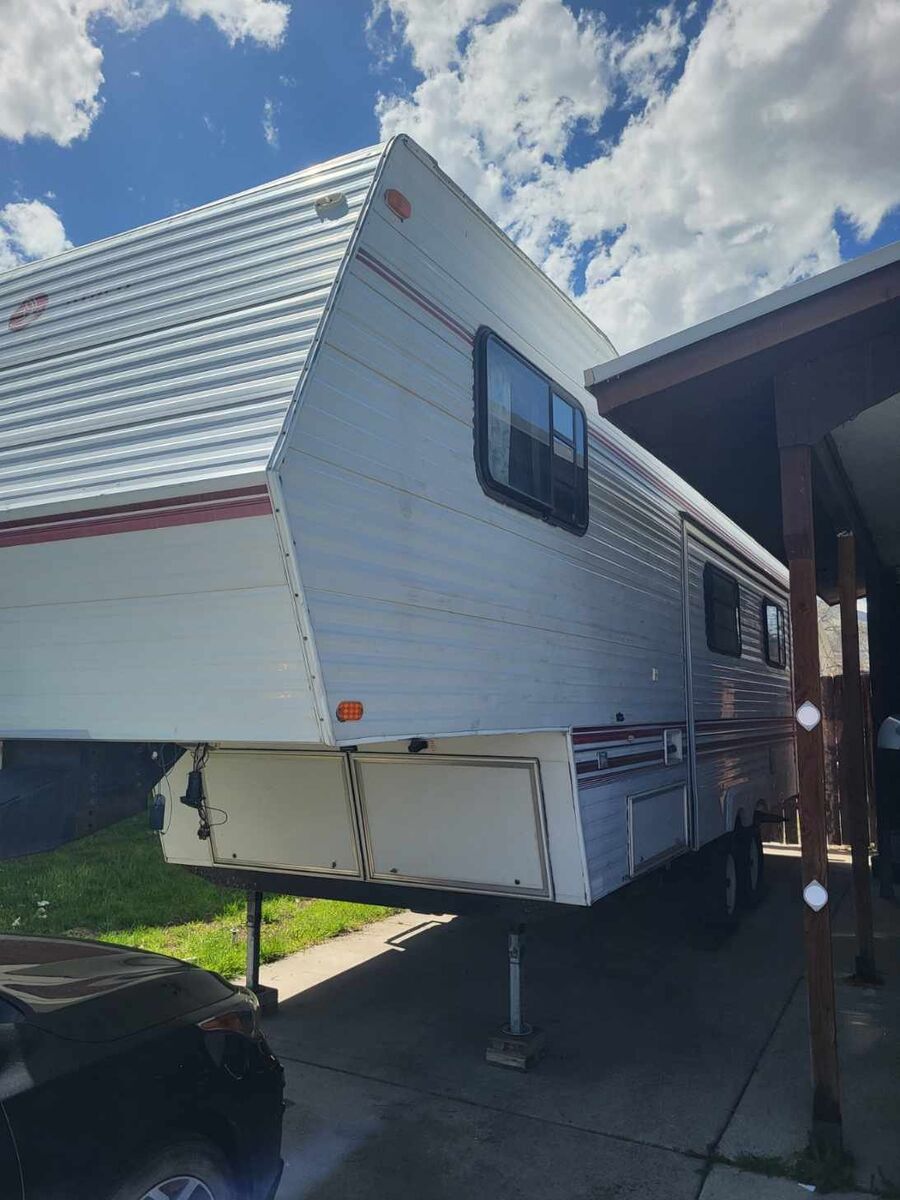 1993 jayco 5th wheel with pop out . new tpo roof everything works and it is in great shape asking $5000 or will consider trade for harley, muscle car,or something of equal value.