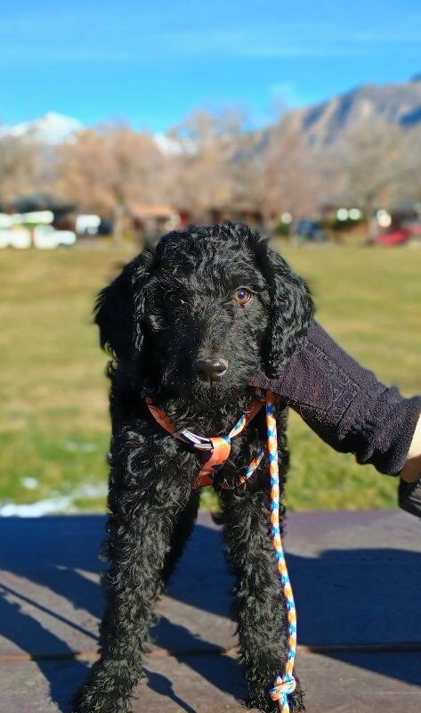 Aussie-Doodle mix puppies for sale! Born November 7th All have dew claws removed, first round of shots, and just recently got their first rabies shot. Male and female available. All seem to be hypoallergenic with black fur and will need to be groomed periodically Sweet natured and very intelligent Last picture is of the mother. All will be getting a bath and puppy cut in the next few days. Mother will also be groomed and picture updated. Text me to set a time to come and see them!