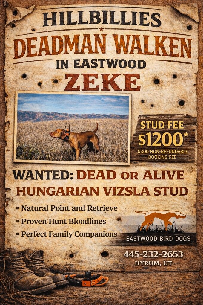 VenmoI have 2 exceptional male vizslas standing as studs for 2026. If interested please text Eastwood Bird Dogs and include a photo of your dogs pedigree. Breeding selection will be determined by pedigree compatibility. Breed details are on the advertisements. Thank you.